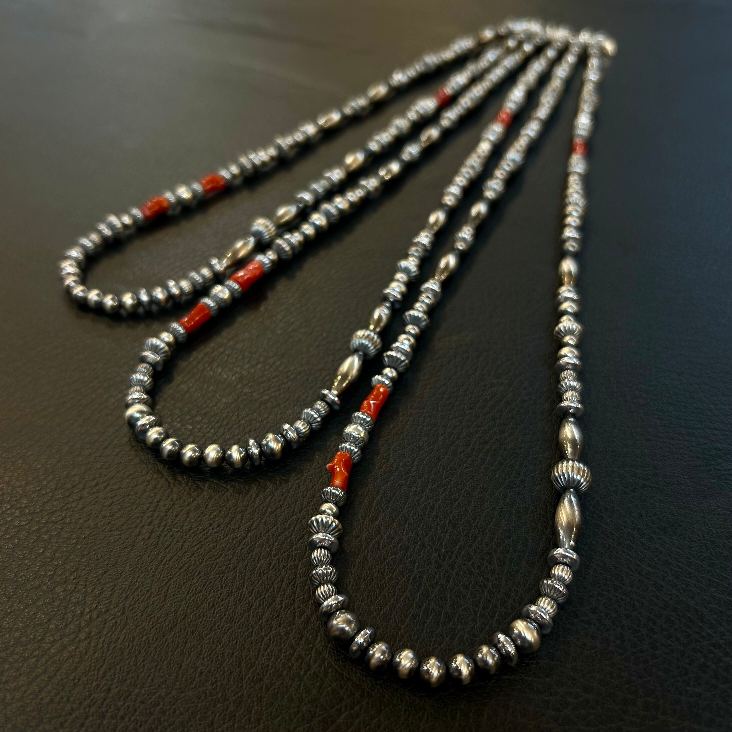 ナバホパールに、シルバービーズ、ターコイズビーズ、コーラルビーズ