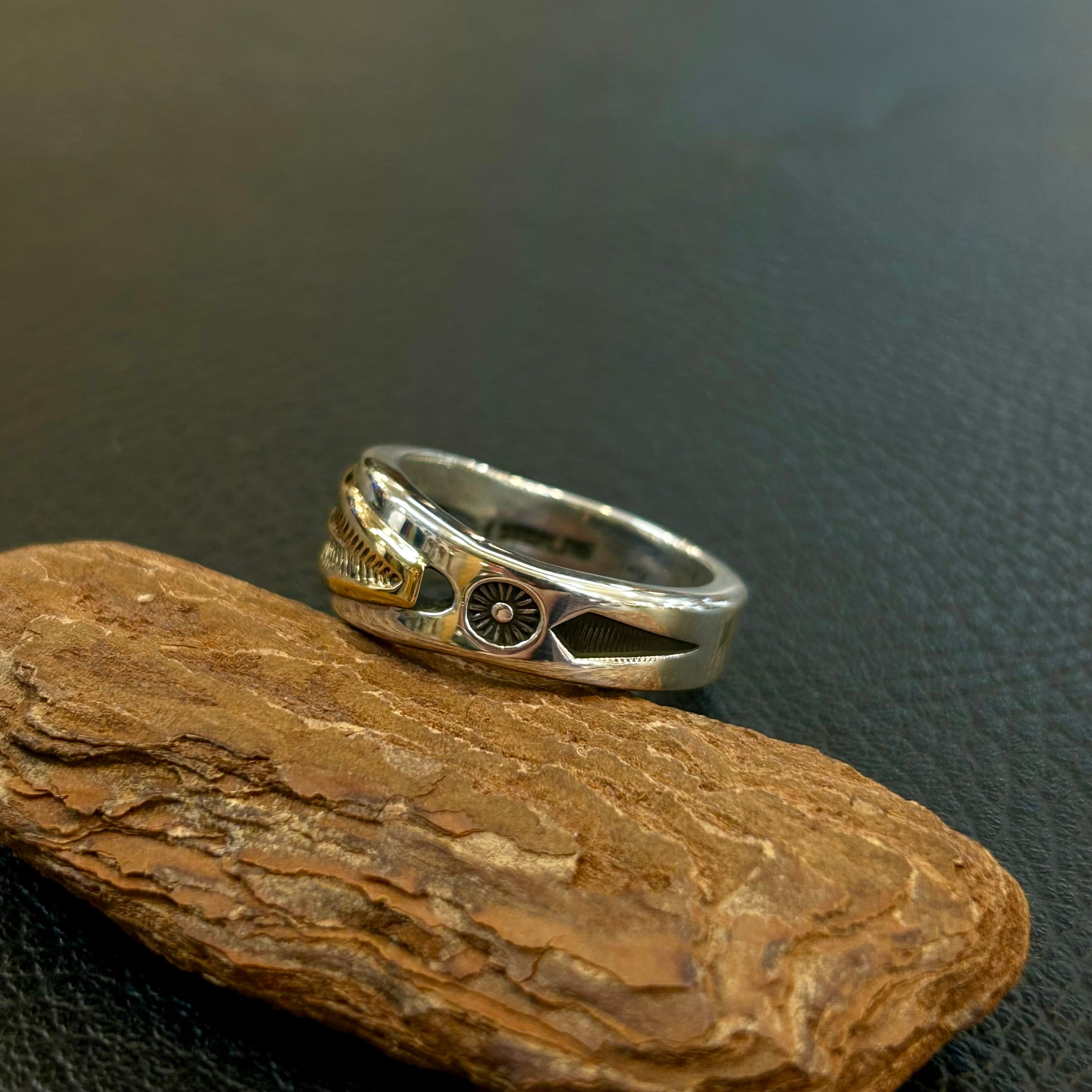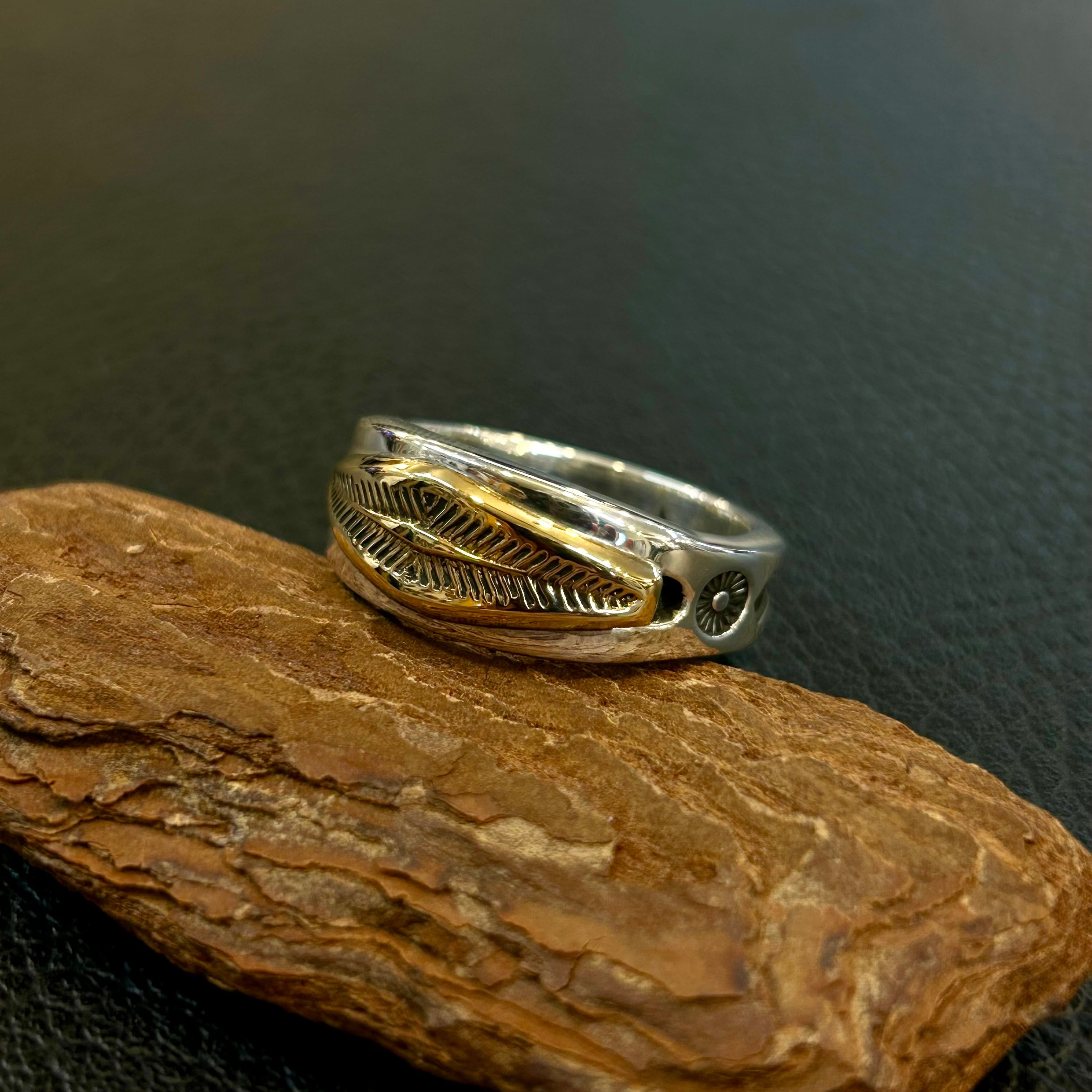 滑らかなシルバーに深く打たれたスタンプが特徴的です‼️