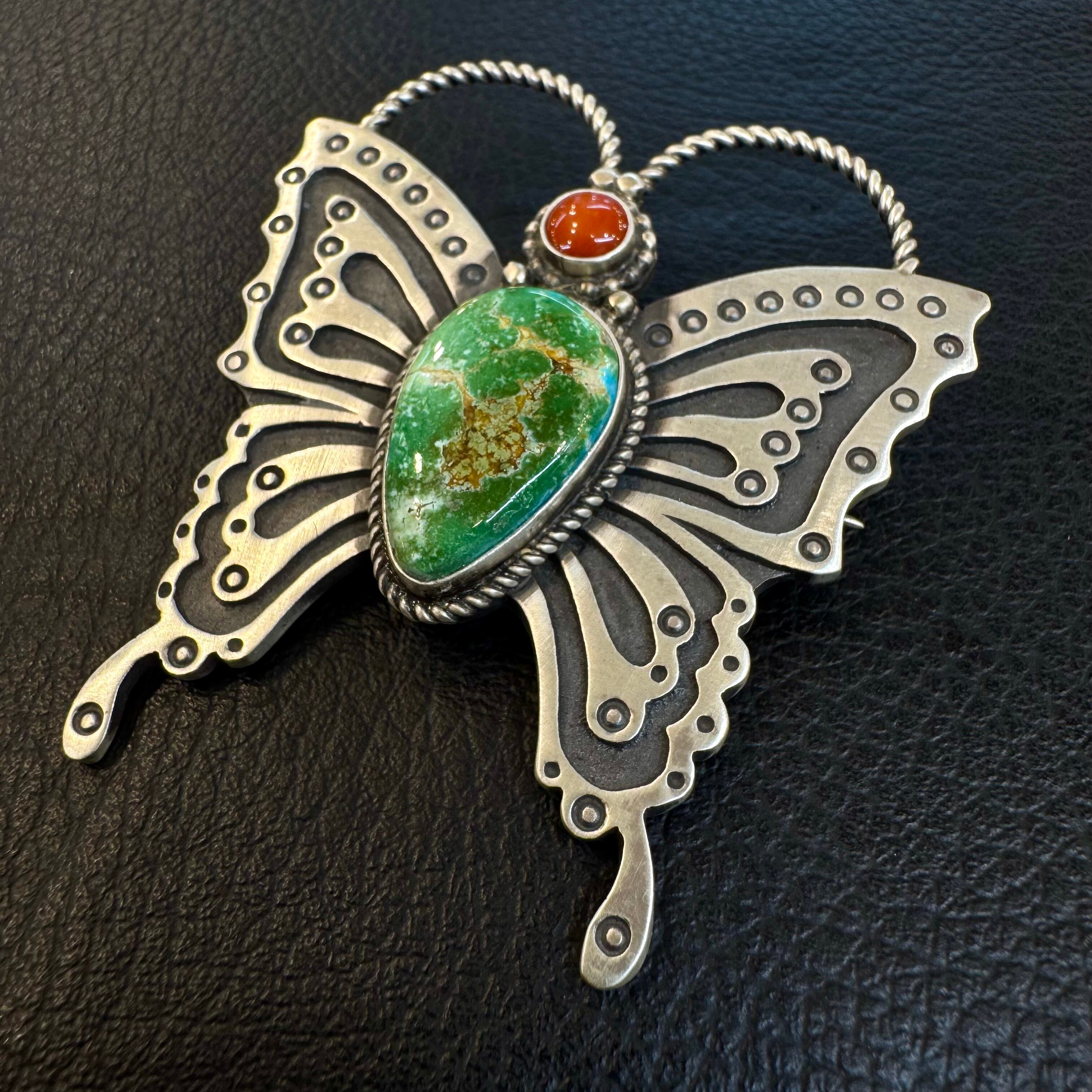 シルバー部分はハーマン氏ならではの重量感ある造形と緻密なスタンプワークが見事に融合‼️羽の一枚一枚に至るまで丁寧に彫り込まれたデザインは、蝶の優美さと力強さを見事に表現しています‼️