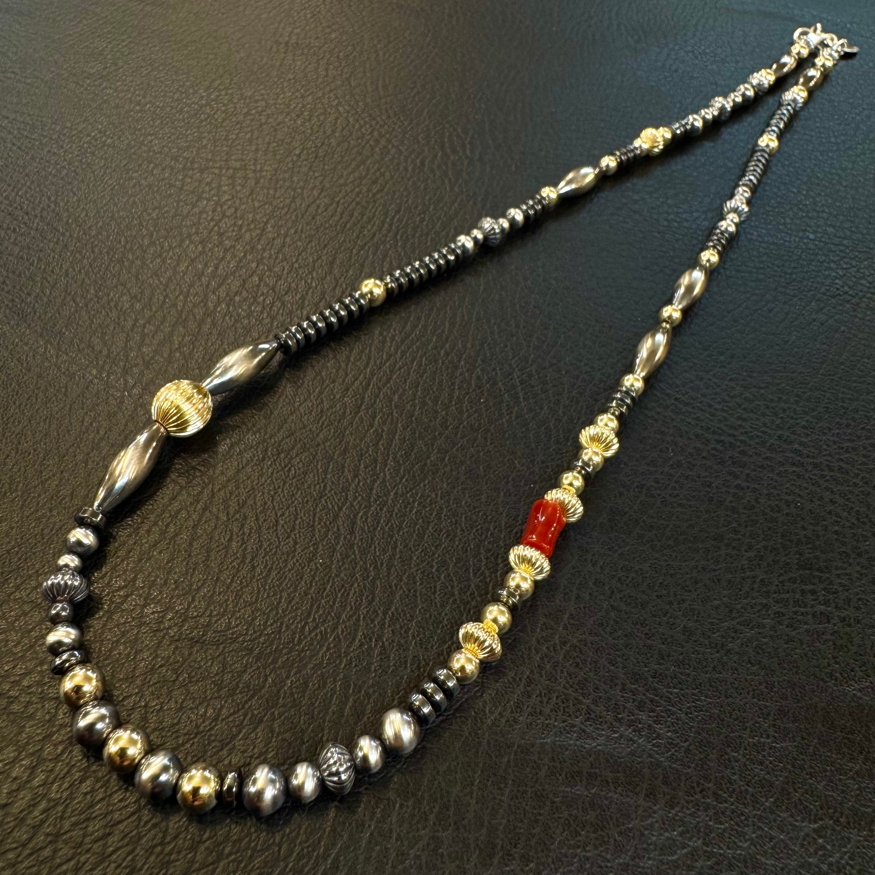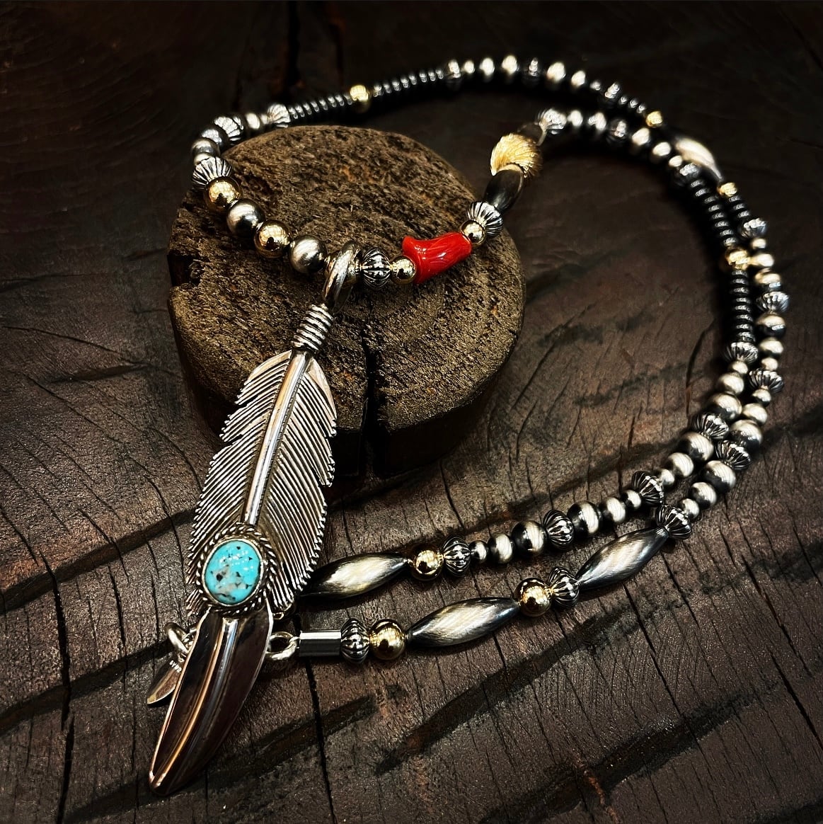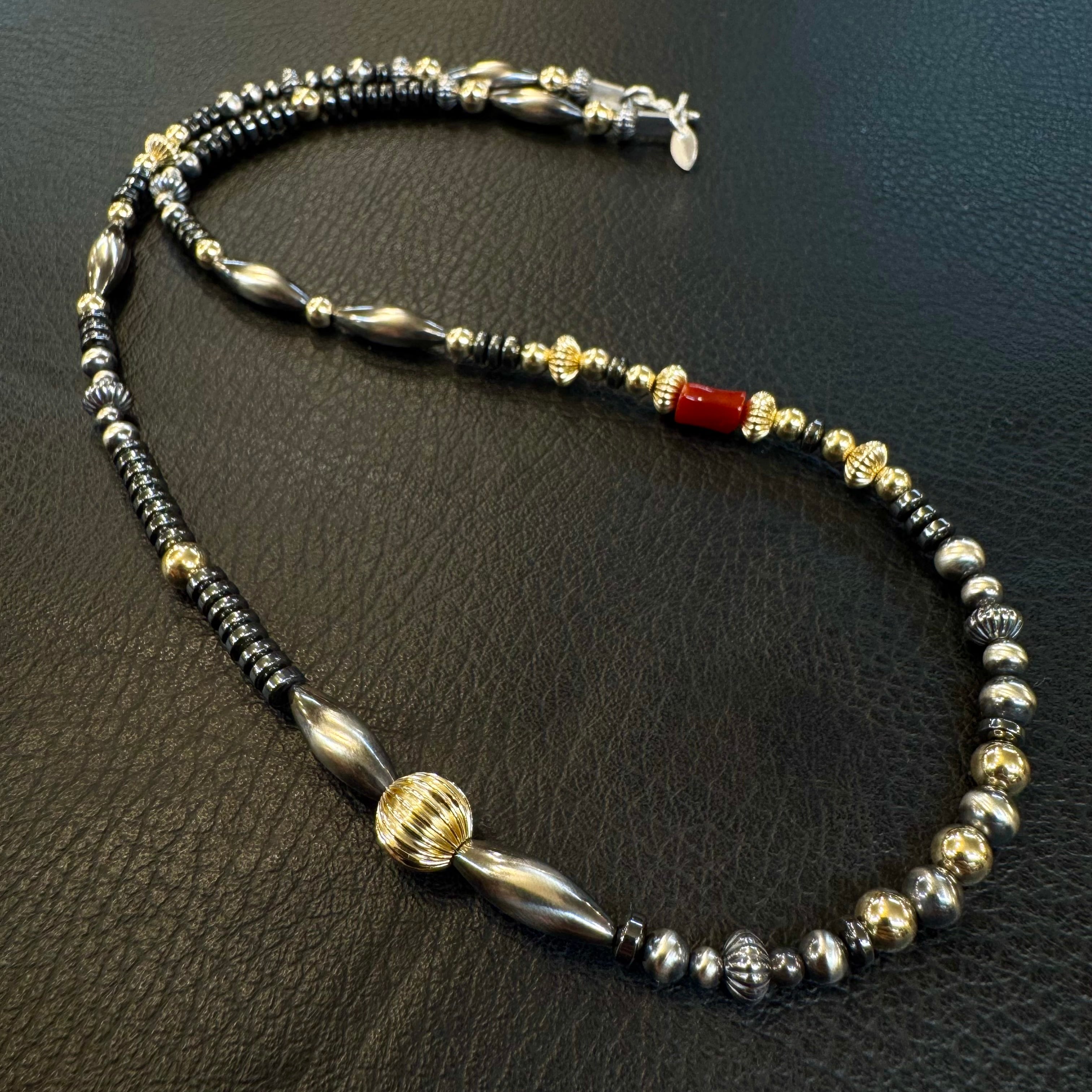 ナバホパールに、シルバービーズ、ターコイズビーズ、コーラルビーズ