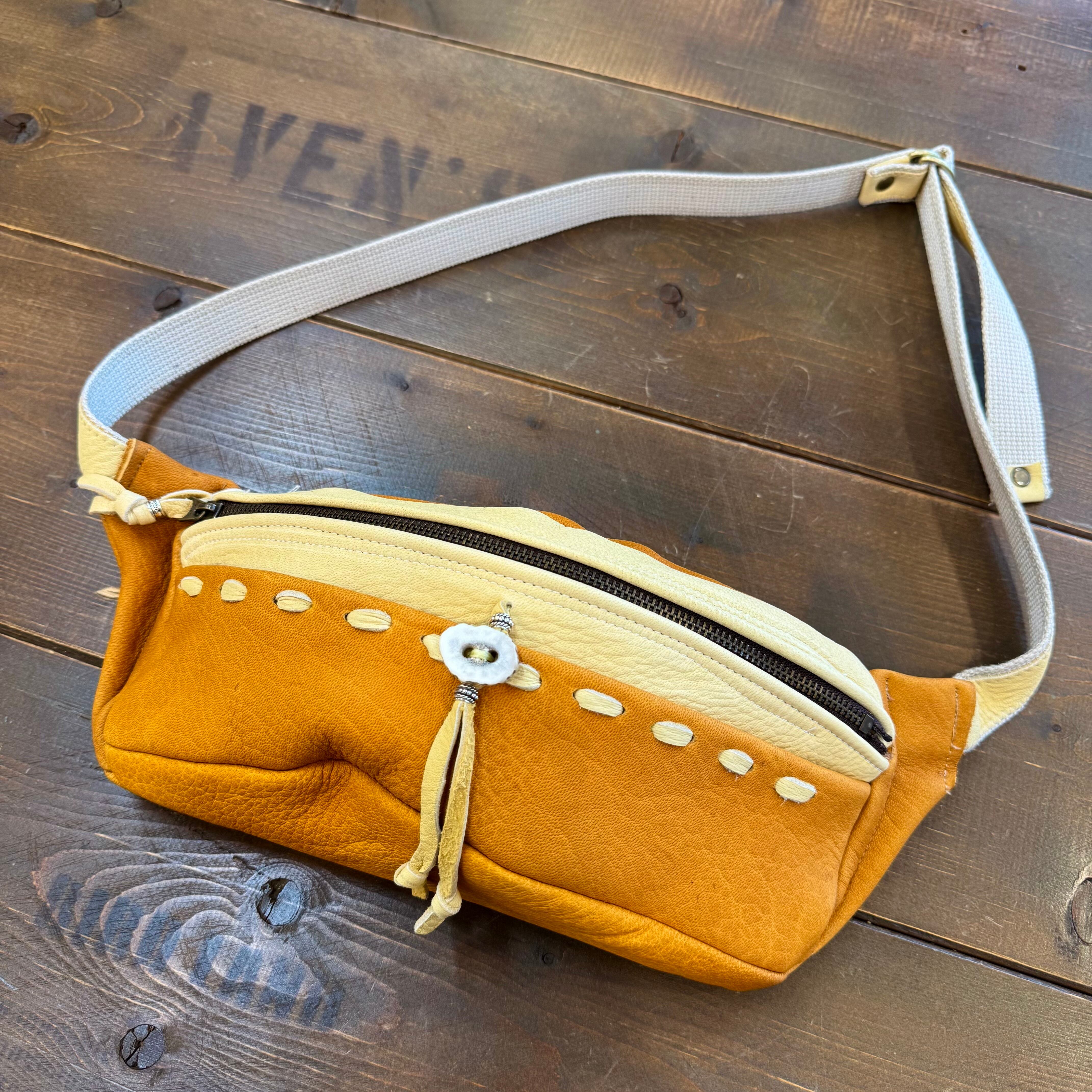 柔らかくモチっとした質感が魅力のディアスキンを贅沢に使用し、ハンドメイドならではの温もりと存在感を兼ね備えたアイテムです。