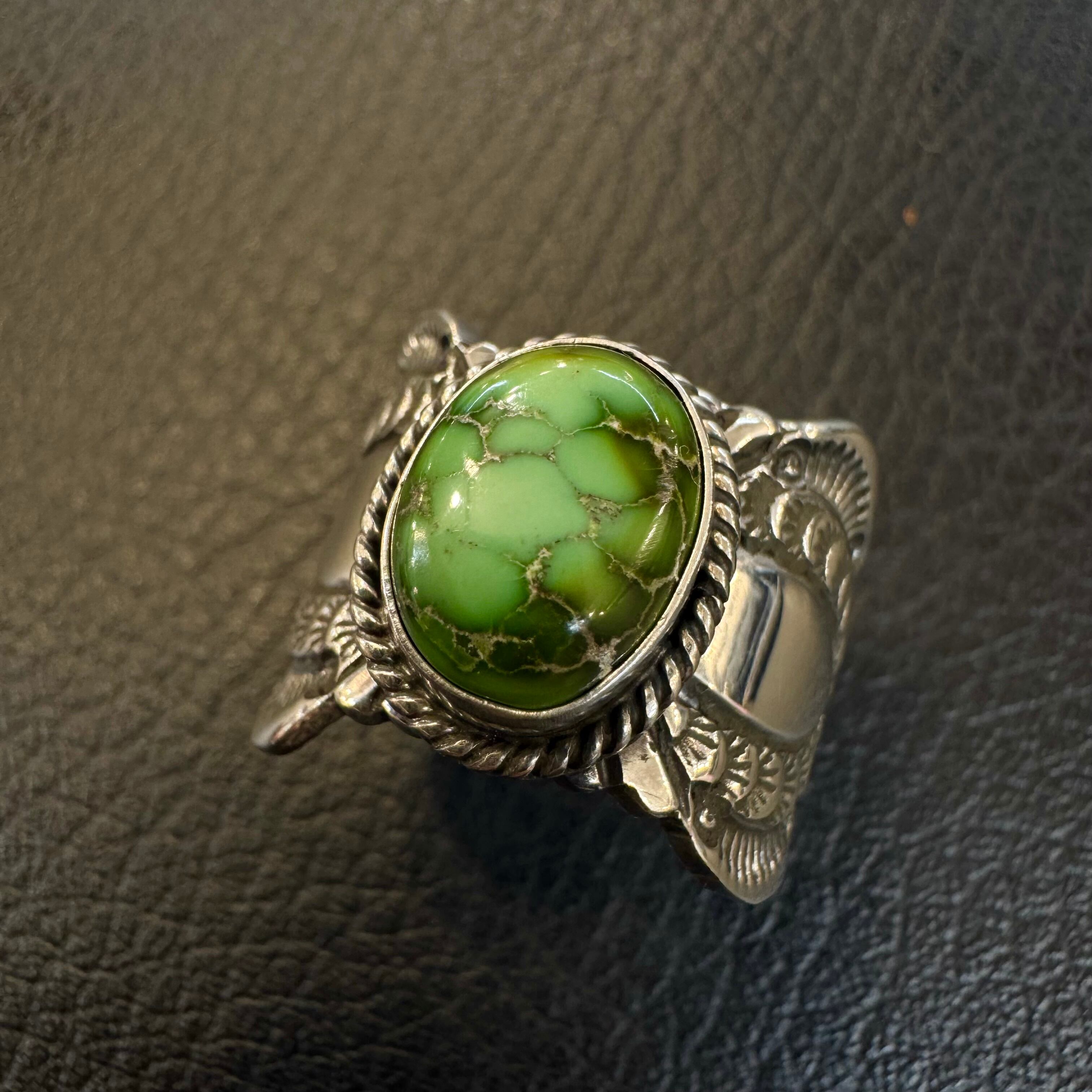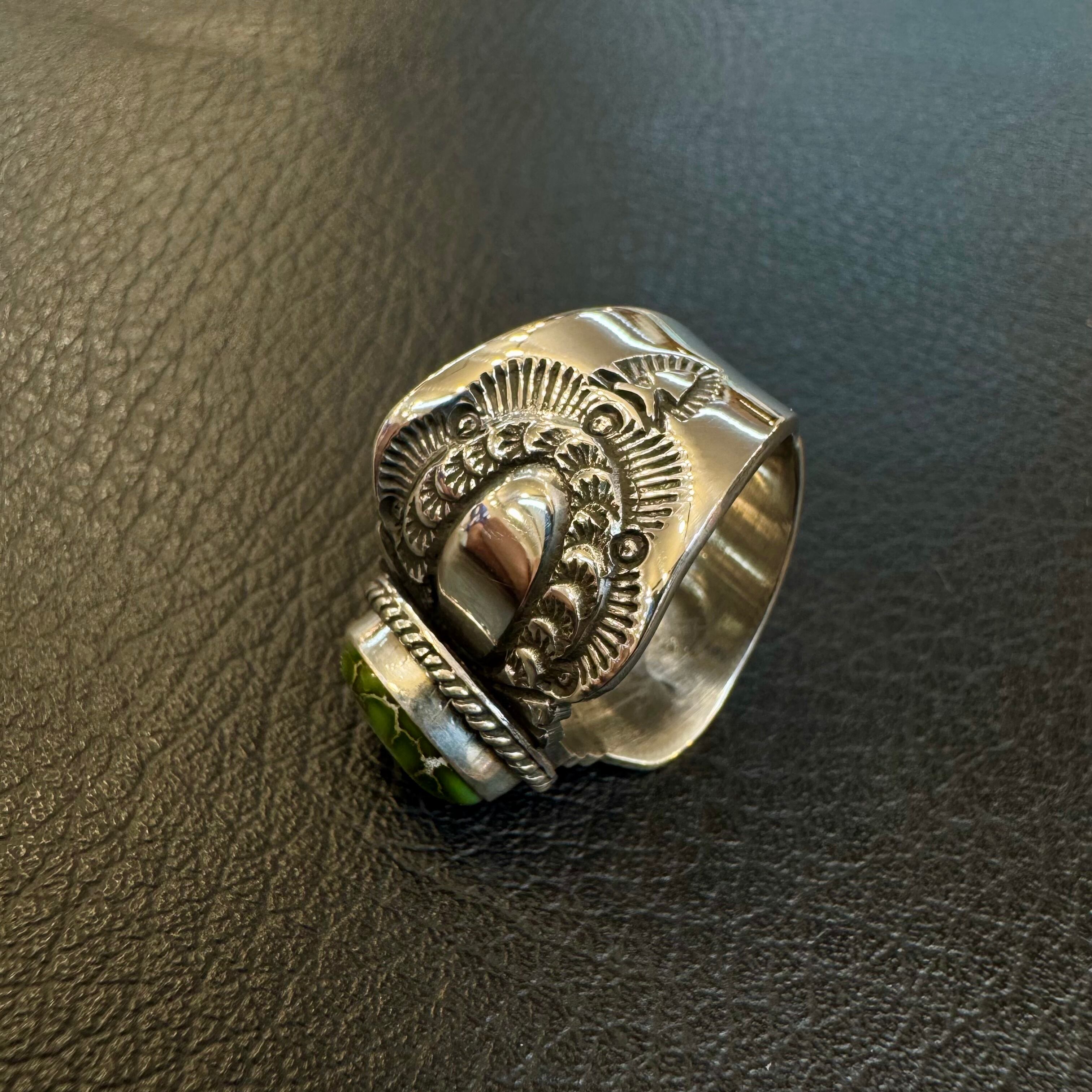 深く打ち込まれたスタンプの美しい陰影に、鮮やかなソノランゴールドターコイズが華を添えます。