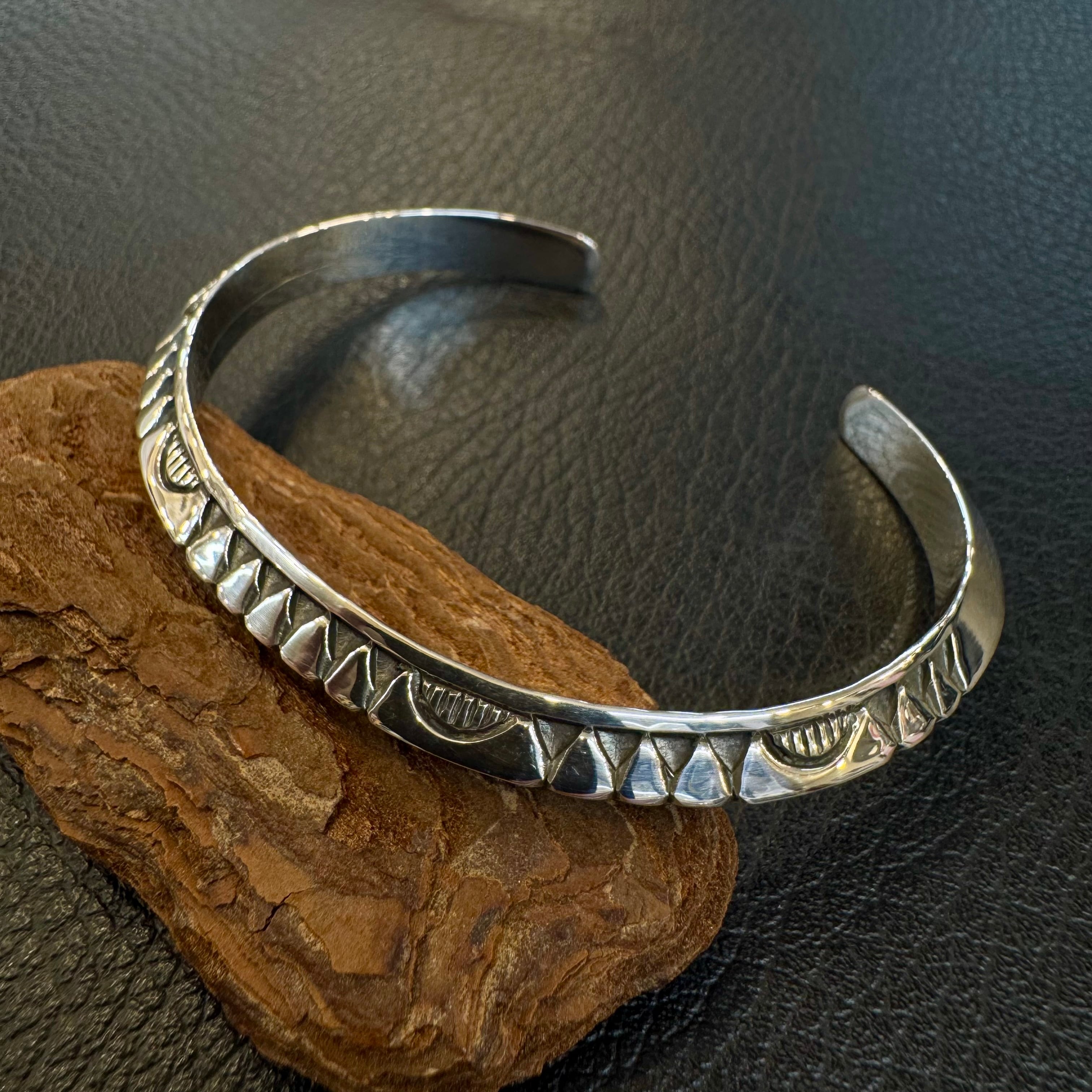 厚みのあるヘビーゲージシルバーに打ち込まれた模様は、
