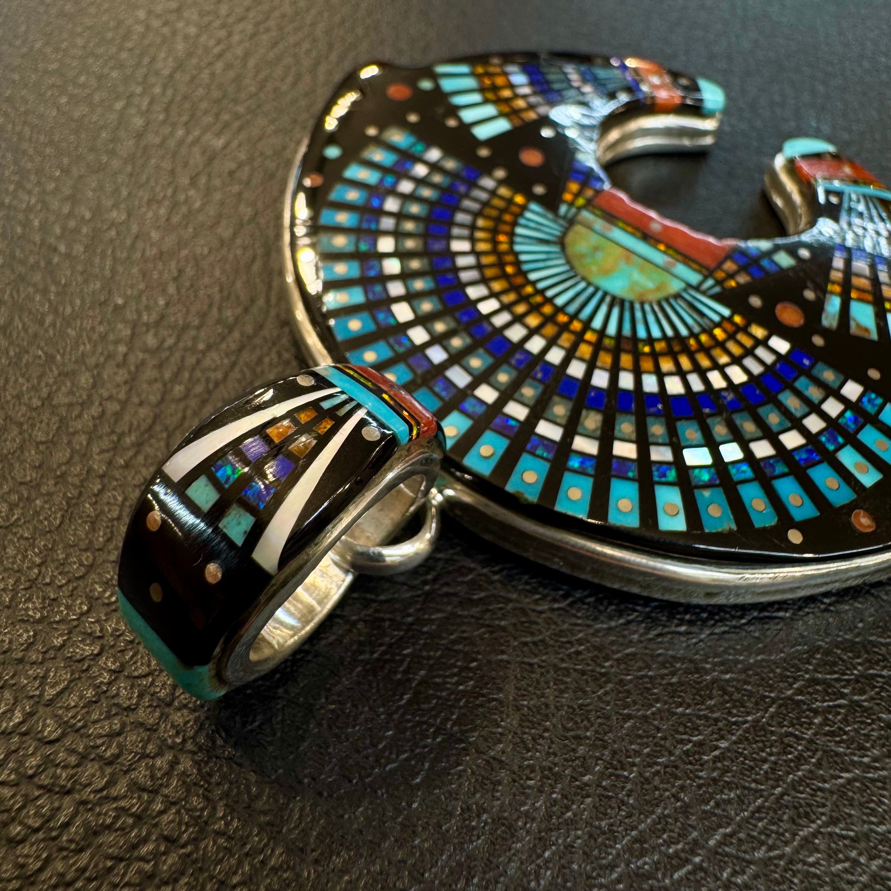 彼の手から生まれるインレイワークは、ただ細かい石を並べたものではありません。