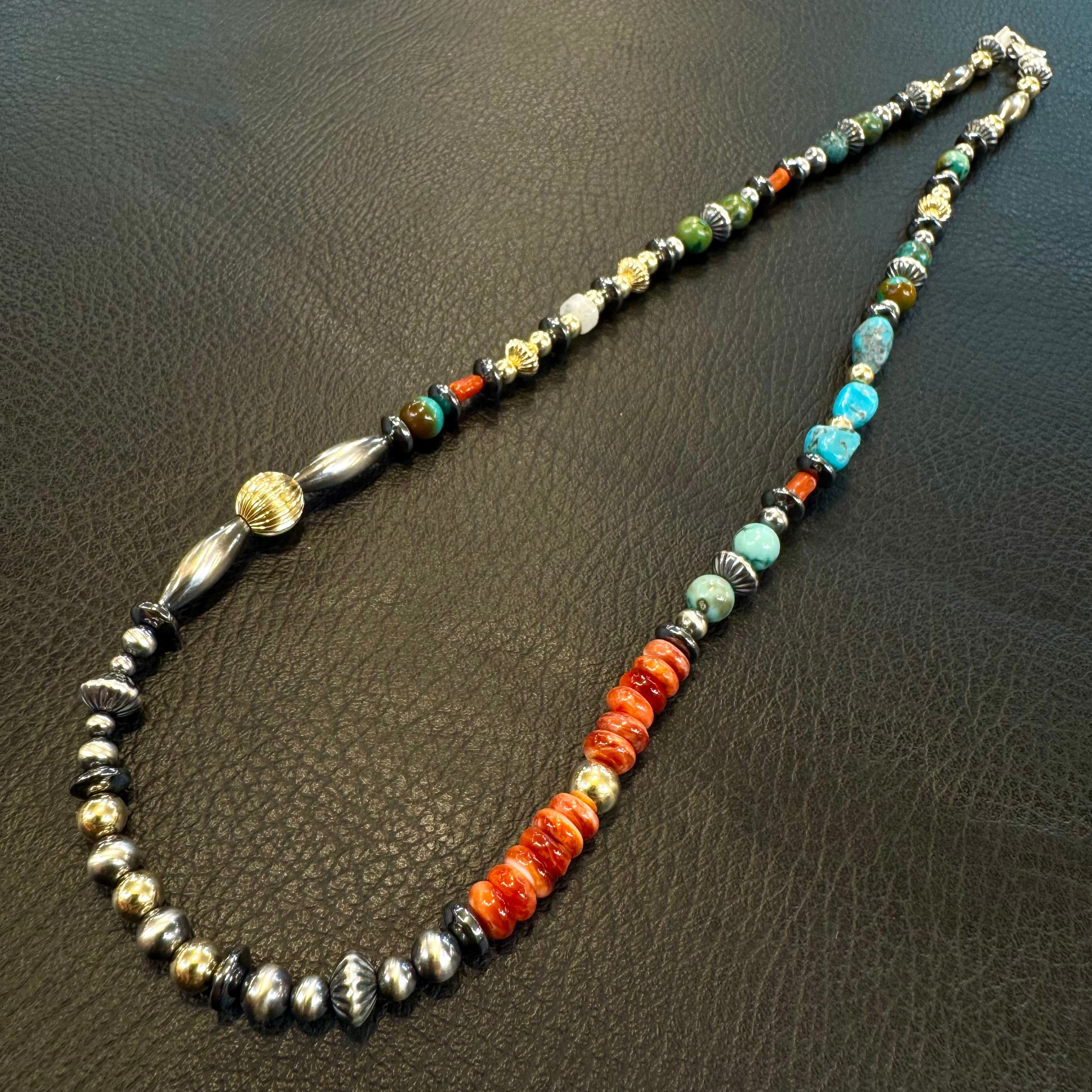 ナバホパールに、シルバービーズ、ターコイズビーズ、コーラルビーズ