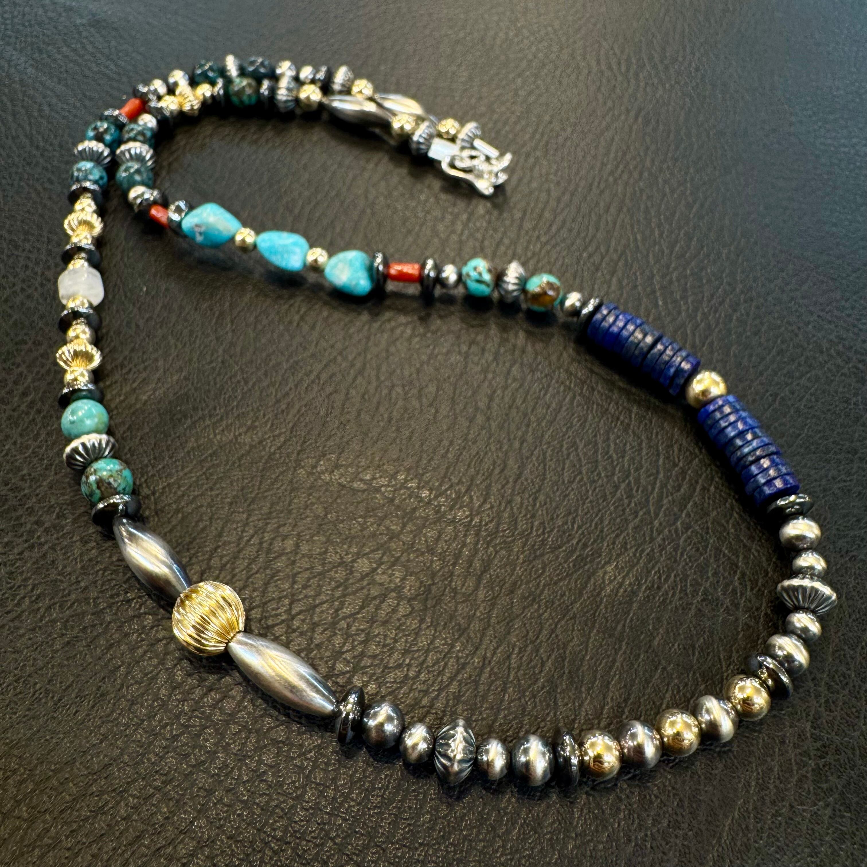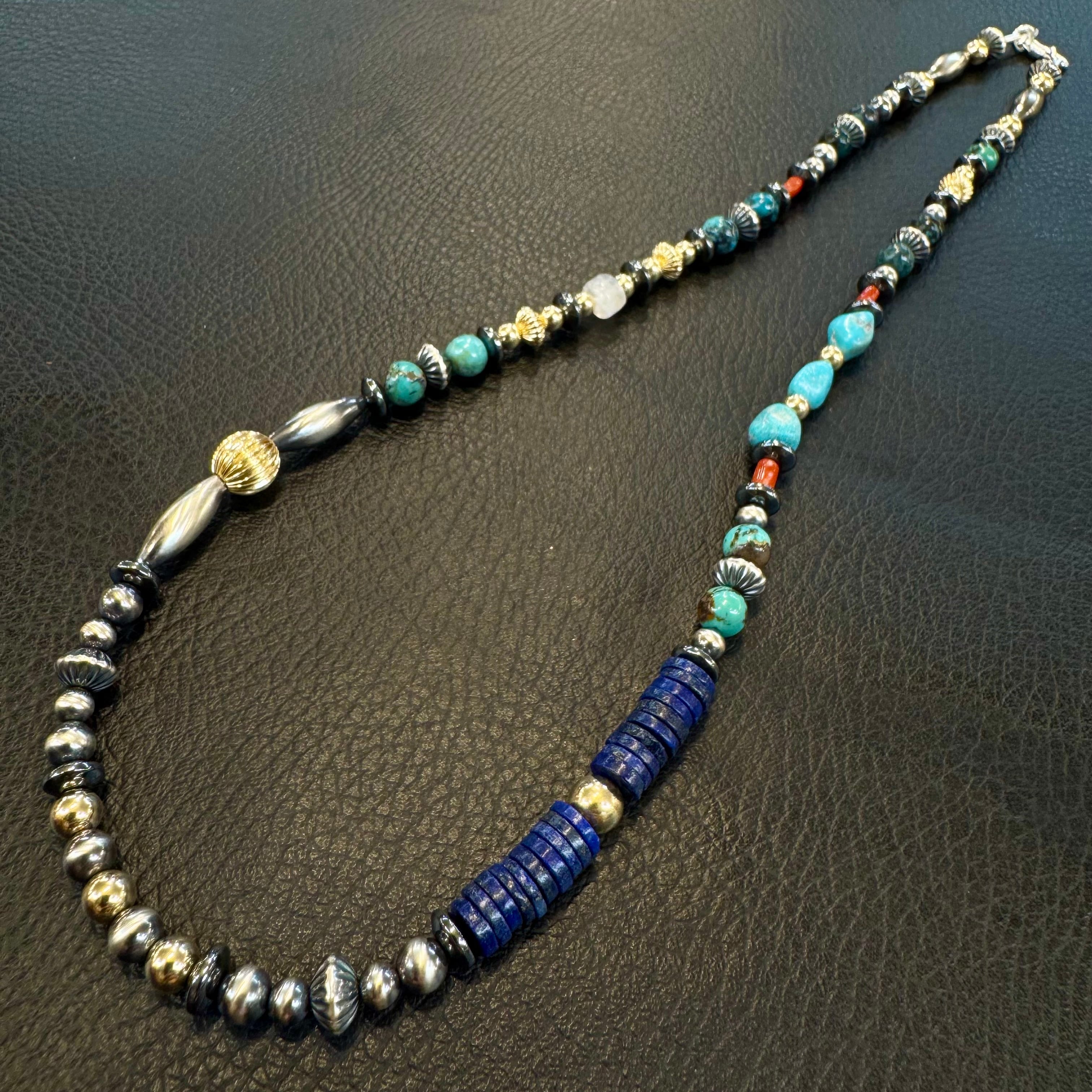 ナバホパールに、シルバービーズ、ターコイズビーズ、コーラルビーズ