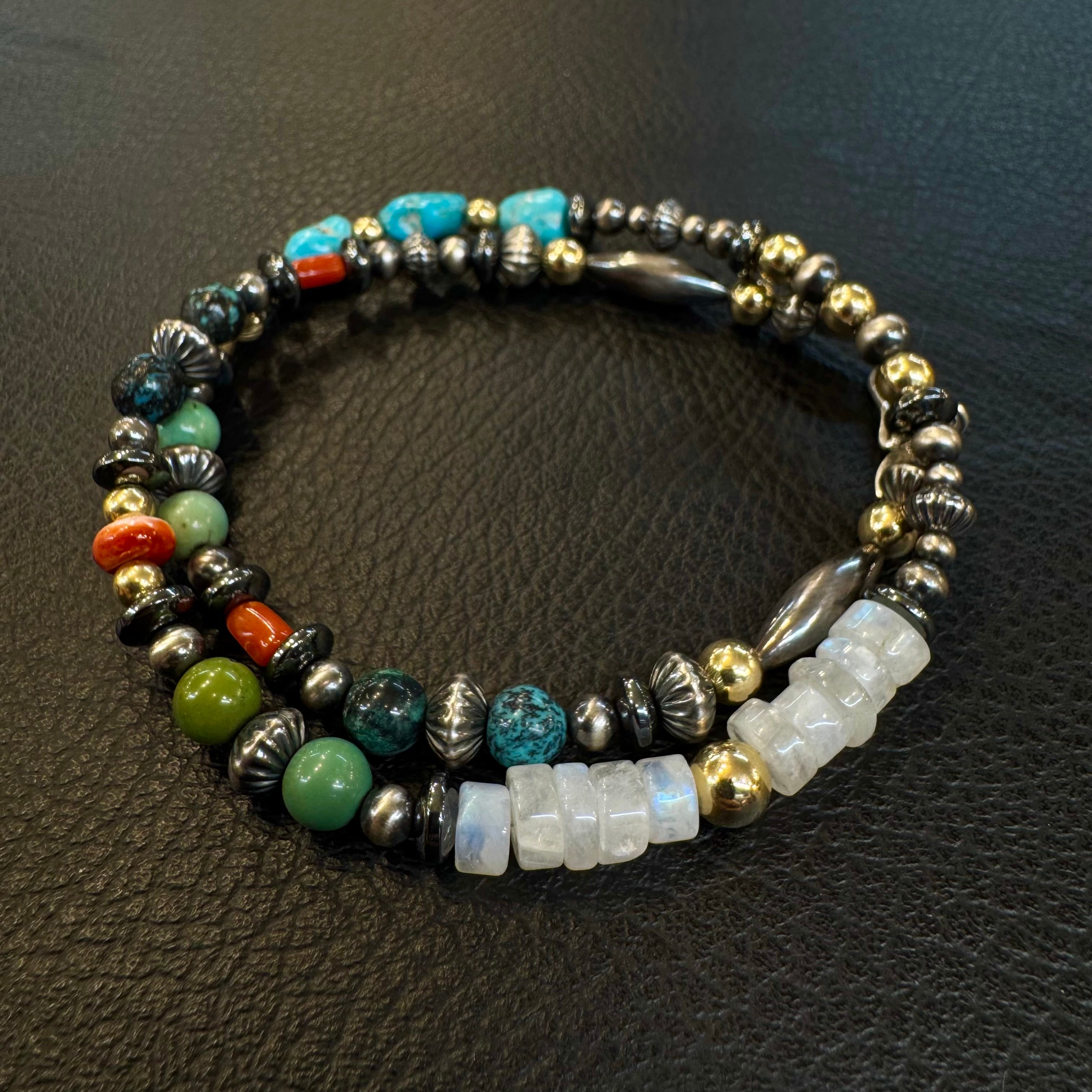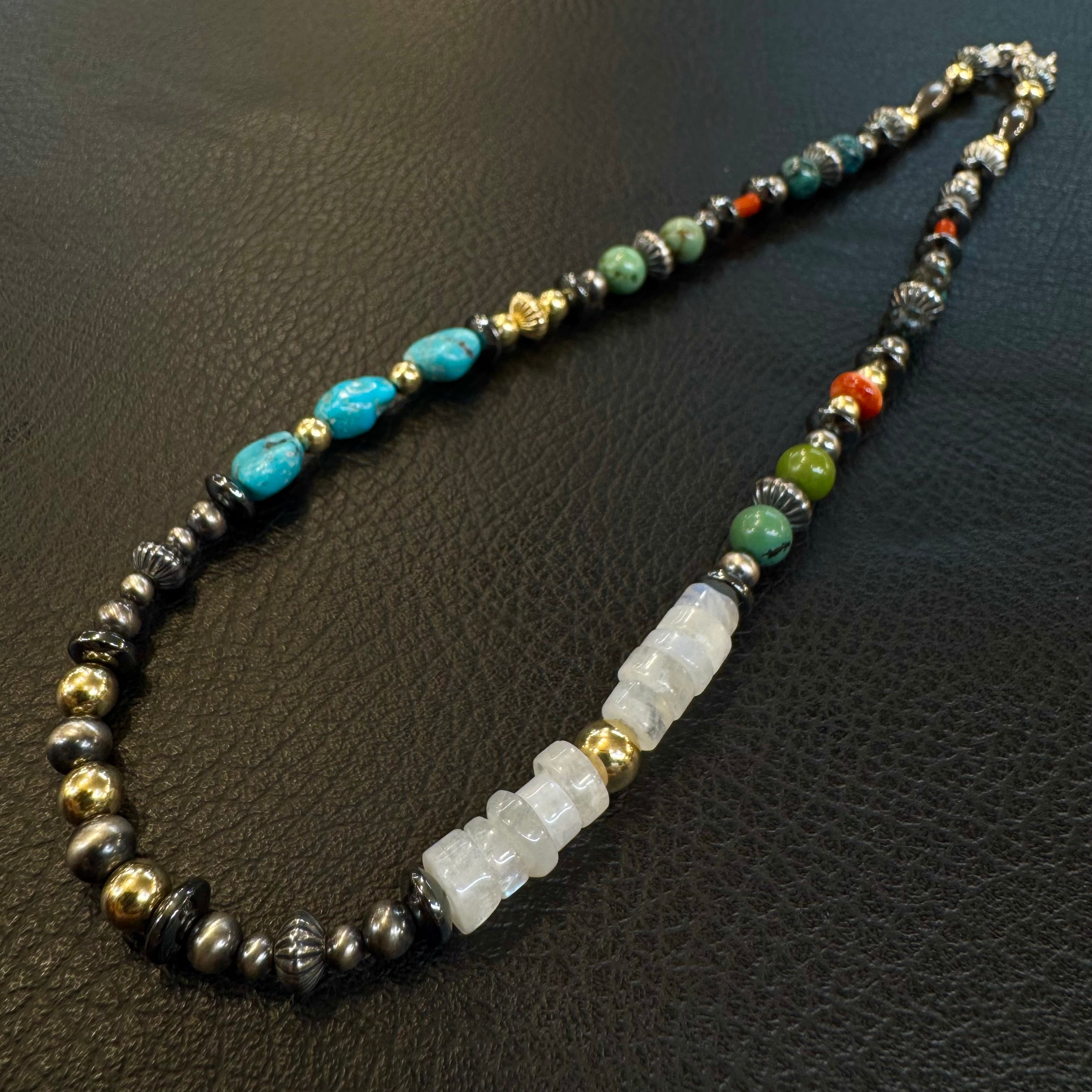 ナバホパールに、シルバービーズ、ターコイズビーズ、コーラルビーズ