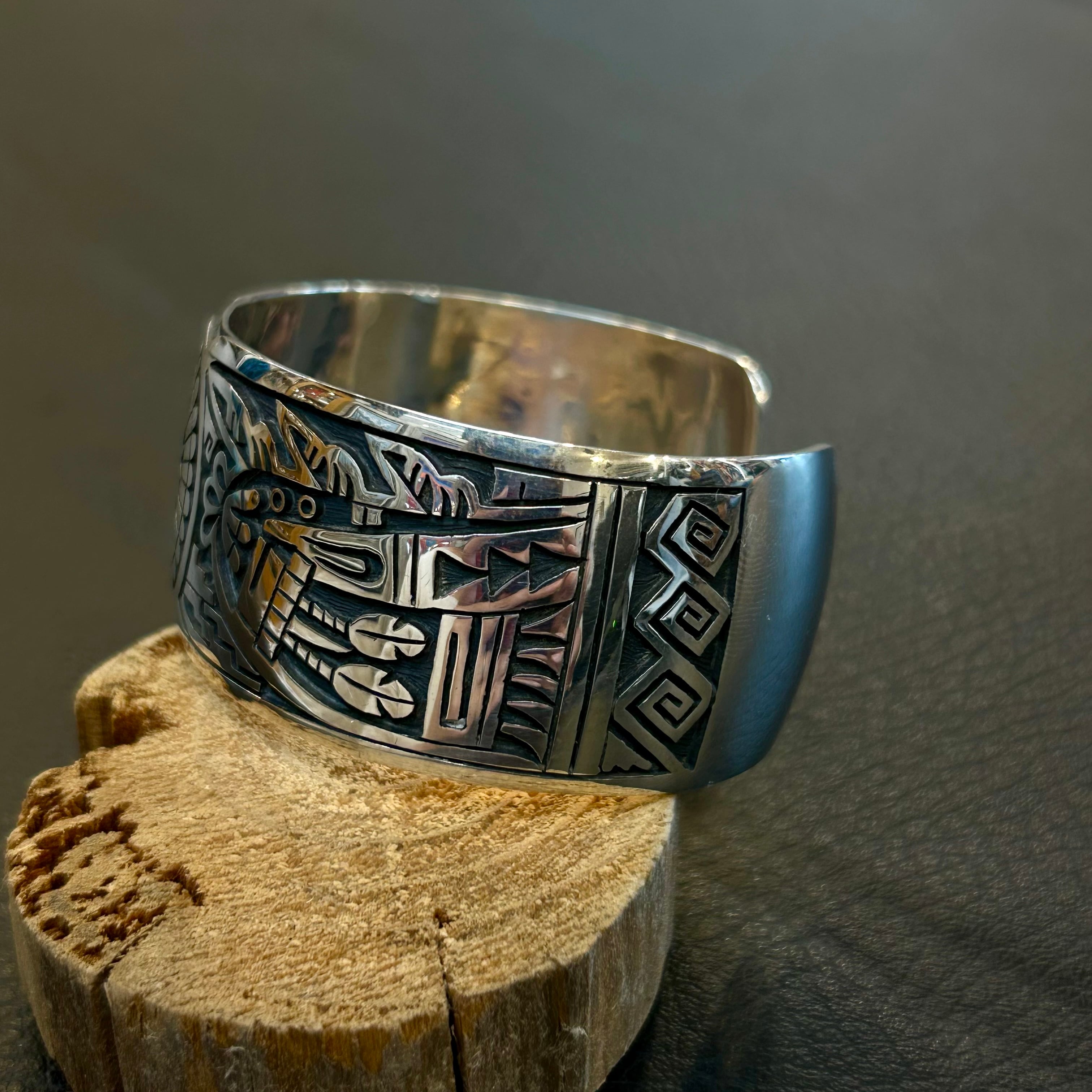 一本のバングルの中にホピの物語が込められた、まさにアートピースと呼べる仕上がりです。