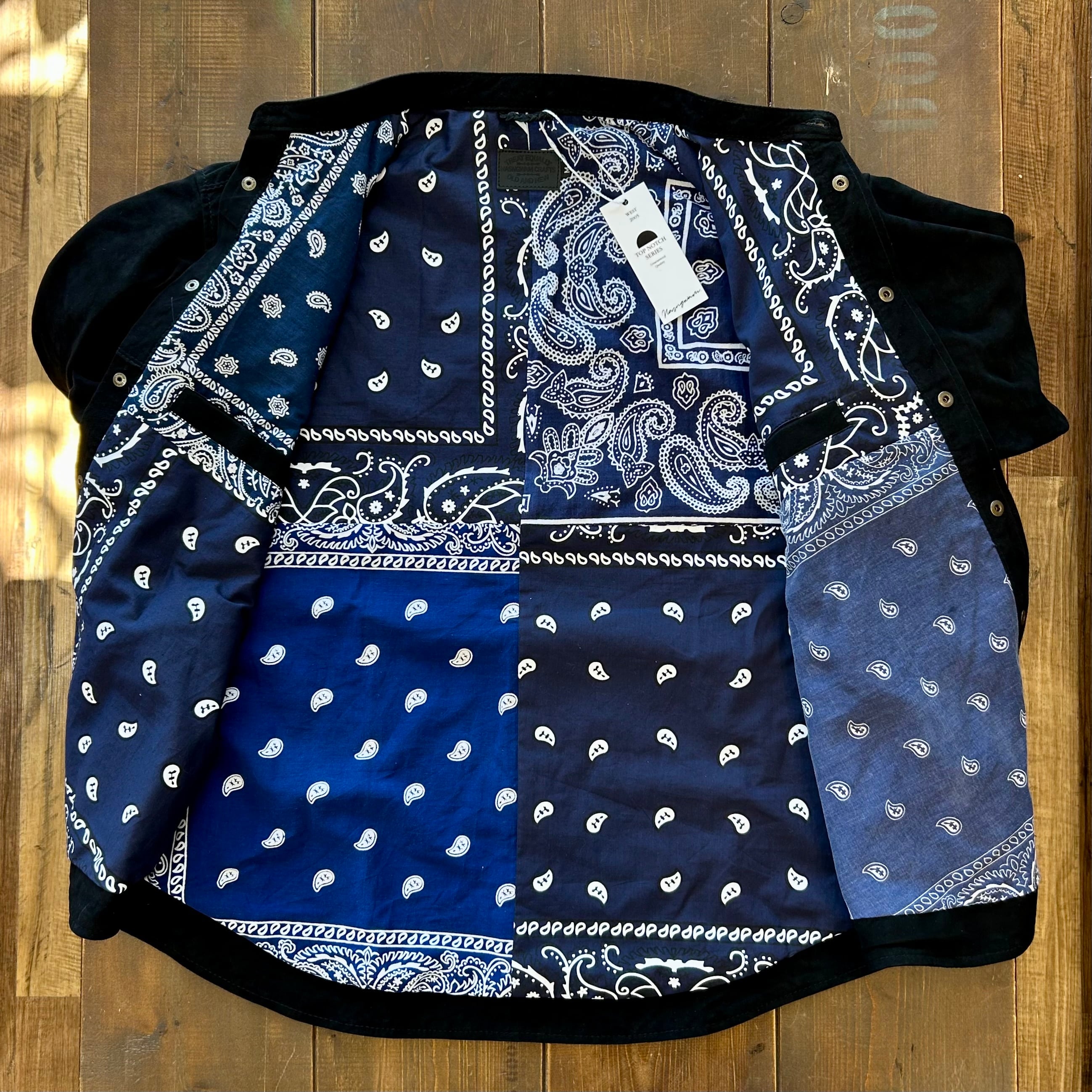 裏地には、USEDのバンダナ生地を贅沢に使用。