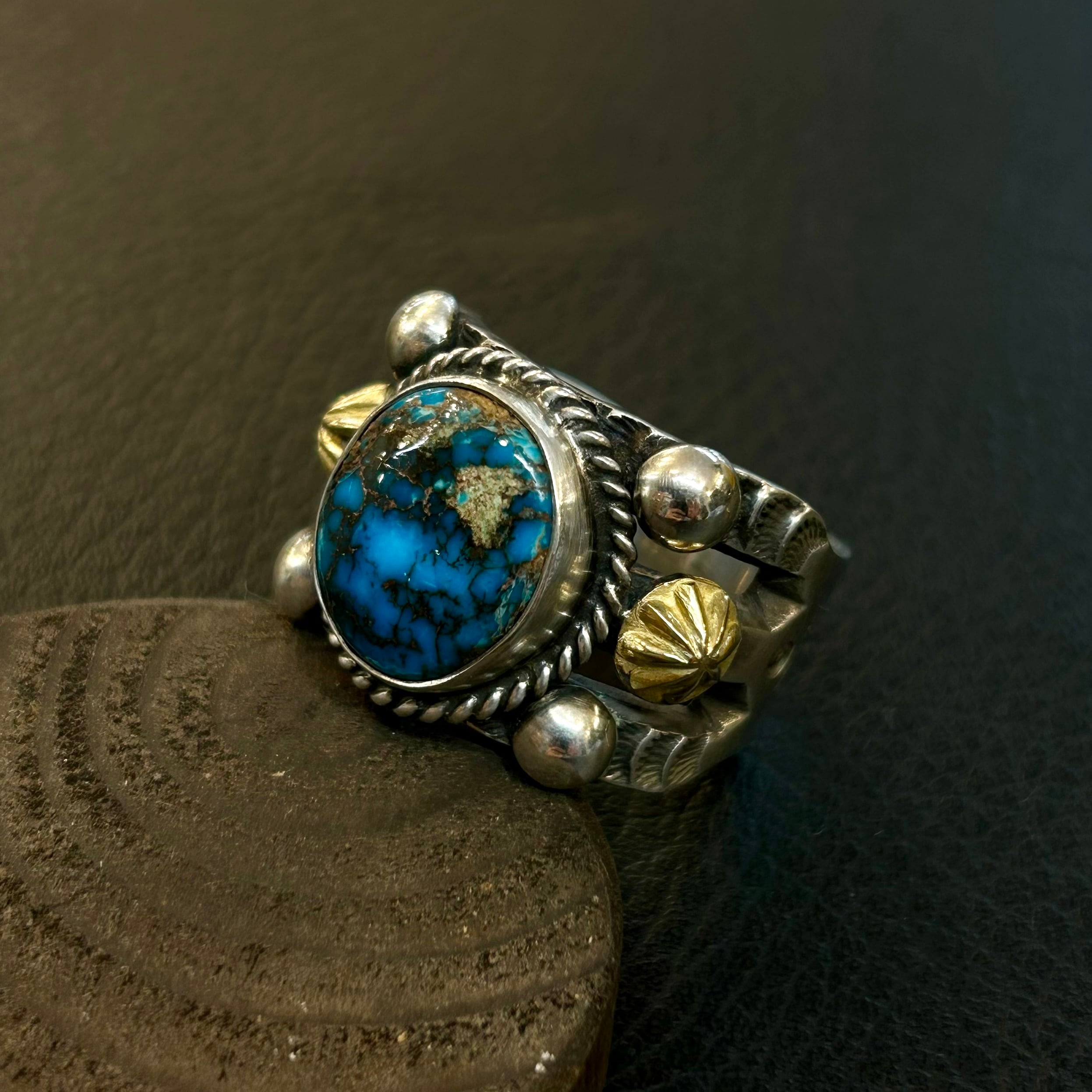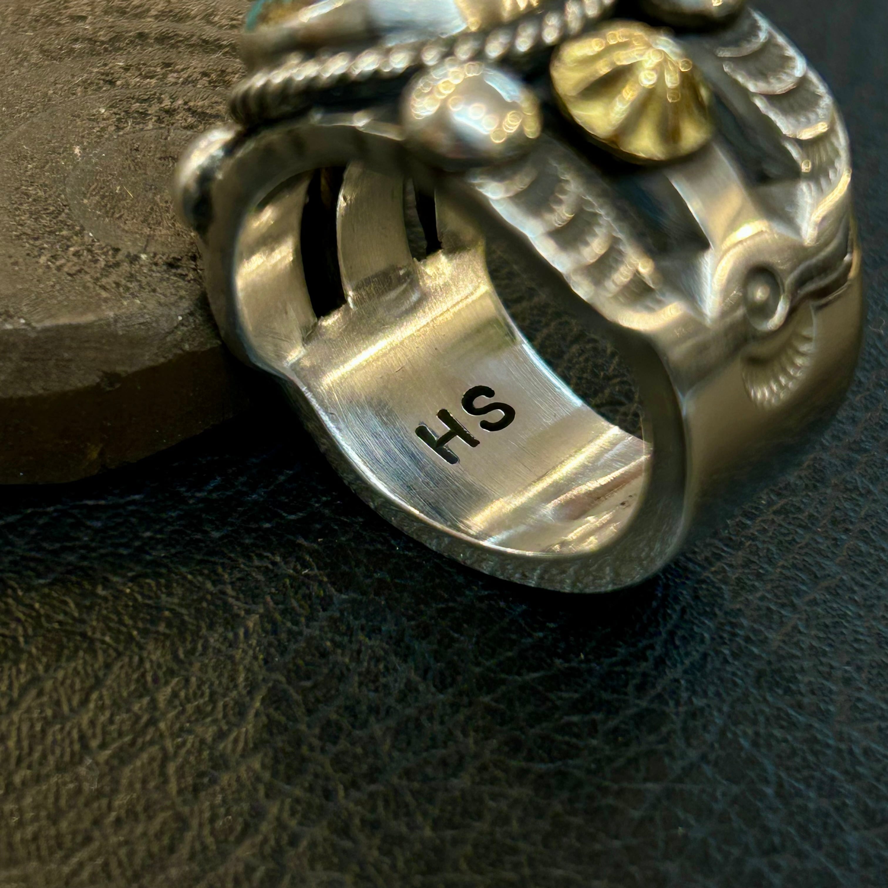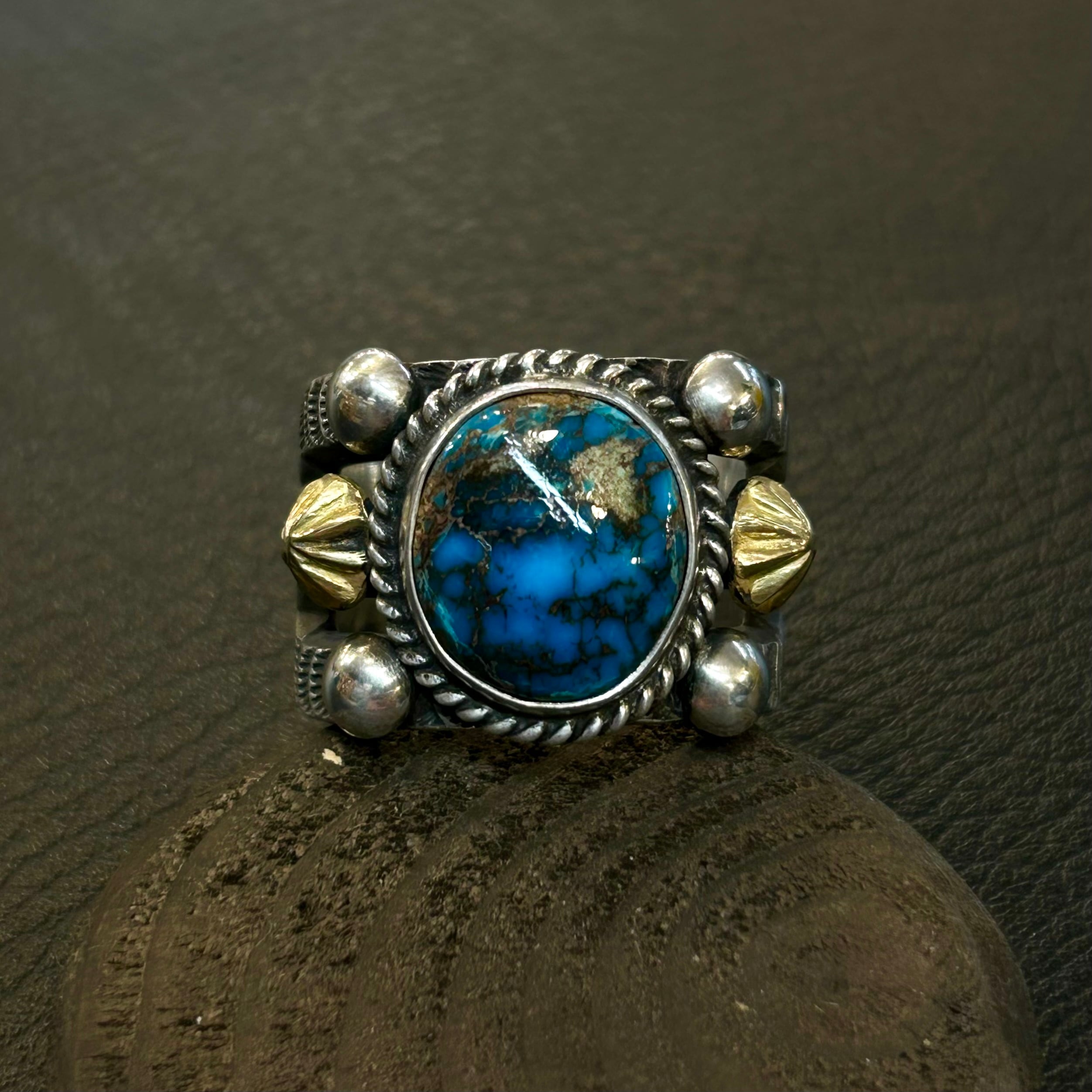 ナバホ族ハーマンスミスさんが制作したビズビーターコイズを使用したリング。