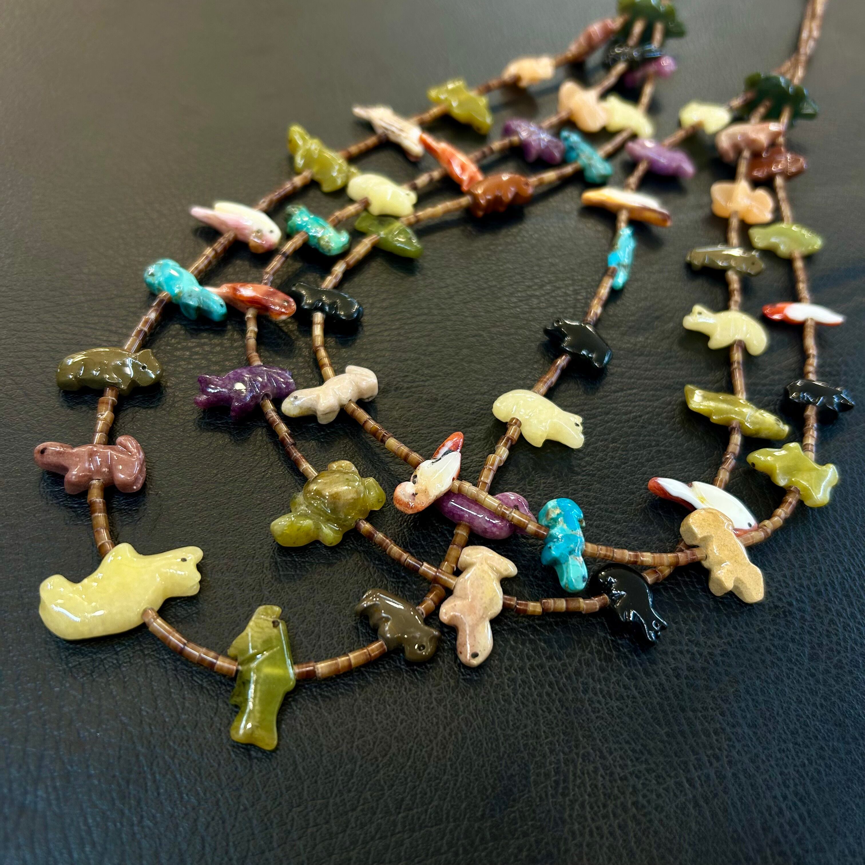 ズニ族に伝わるお守り“フェティッシュ”をつなぎ合わせた、贅沢な3連ネックレス。