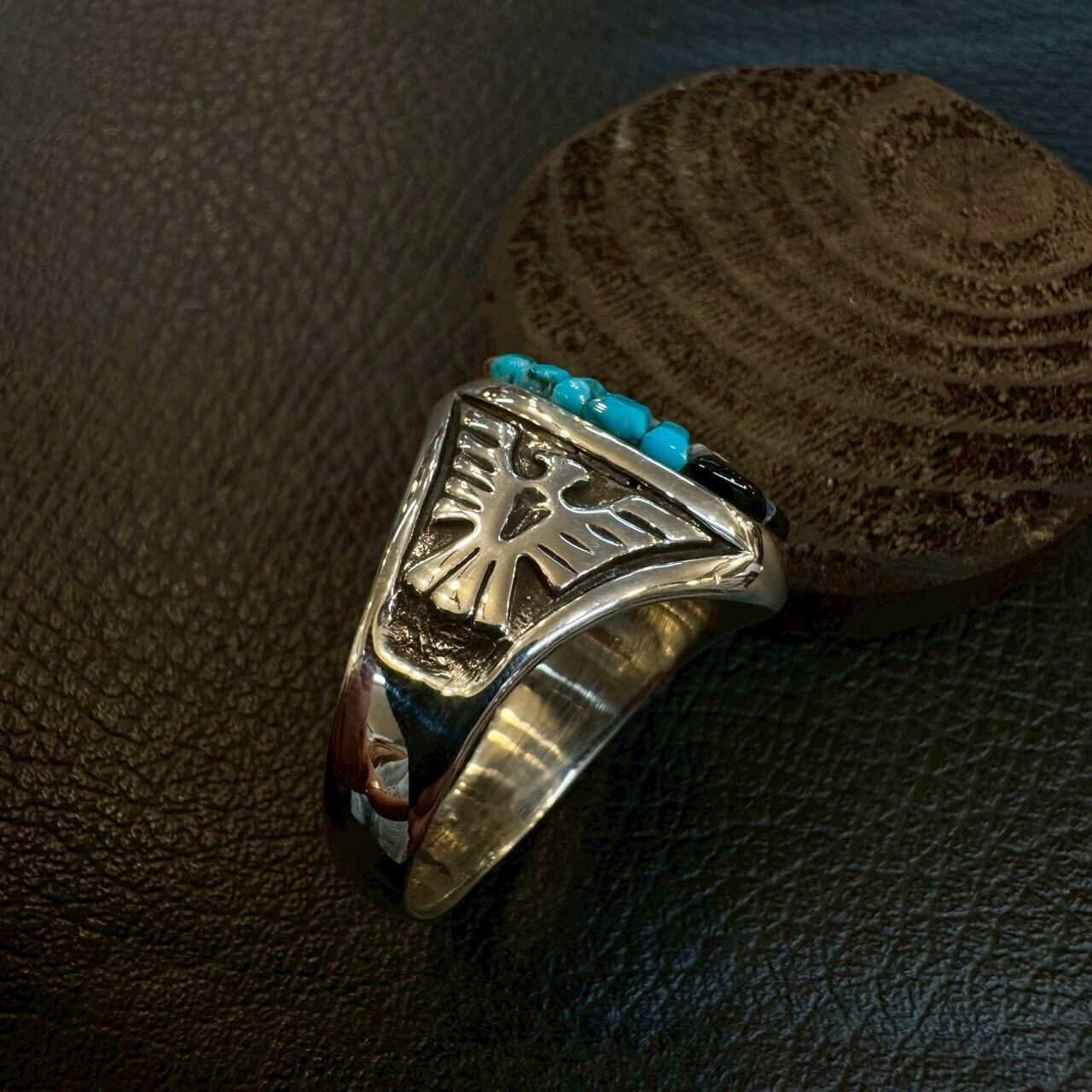 コーンやサンフェイス、イェイ、フェザーといった伝統的モチーフを、立体的なインレイで表現するその技術はまさに芸術の域。ジュエリーの枠を超え、見る人を魅了します。