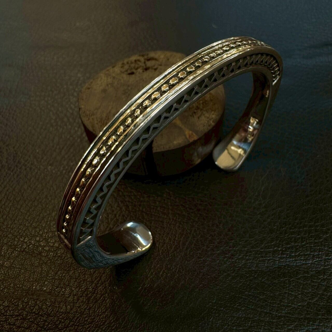 重厚なシルバーと14Kが放つ上品な光が美しく溶け合い、シンプルでありながら圧倒的な存在感を放つ仕上がり。