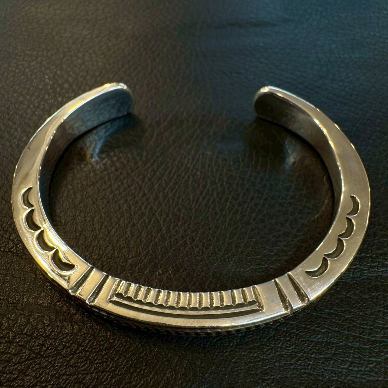 ナバホ族の若手実力派アーティスト、ライルセカテロ(Lyle Secatero)による14Kスクエアスタンプワークバングル。