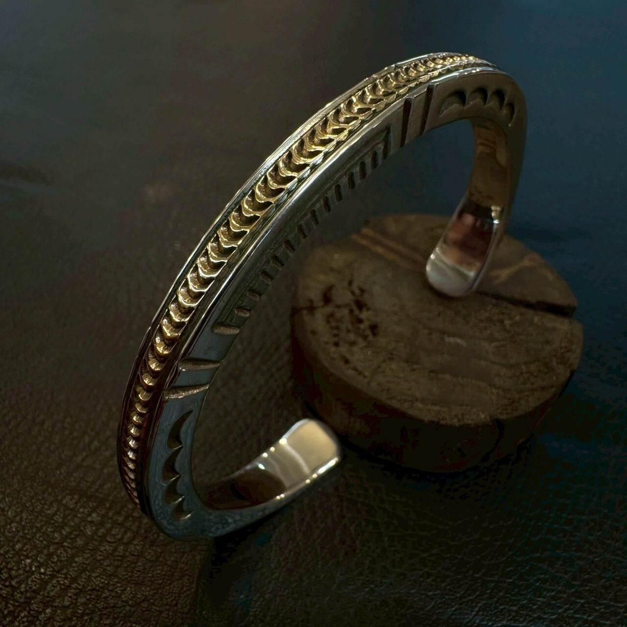 重厚なシルバーと14Kが放つ上品な光が美しく溶け合い、シンプルでありながら圧倒的な存在感を放つ仕上がり。