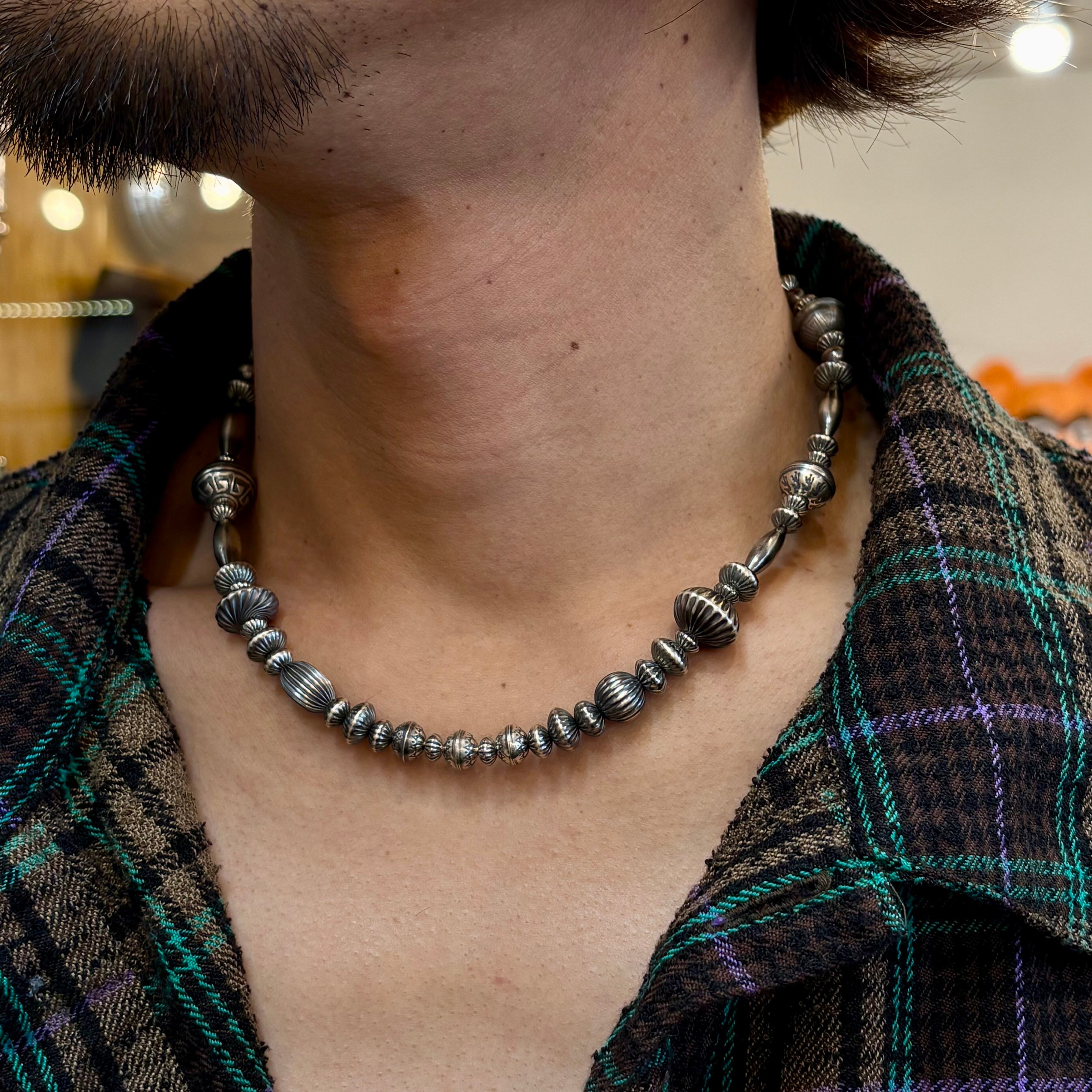 ナバホパールに、シルバービーズ、ターコイズビーズ、コーラルビーズ