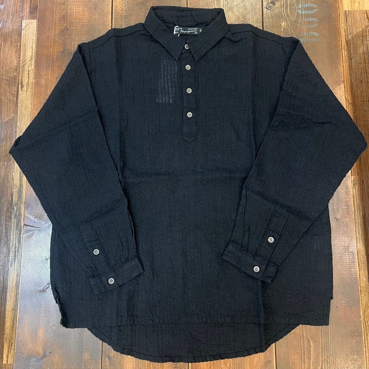 ポロシャツのように力の抜けた襟元、ゆったりとした身幅、そして絶妙に計算された裾のカッティング。ラフに着ても自然とバランスが整う、日常に馴染む完成度の高さが魅力です。