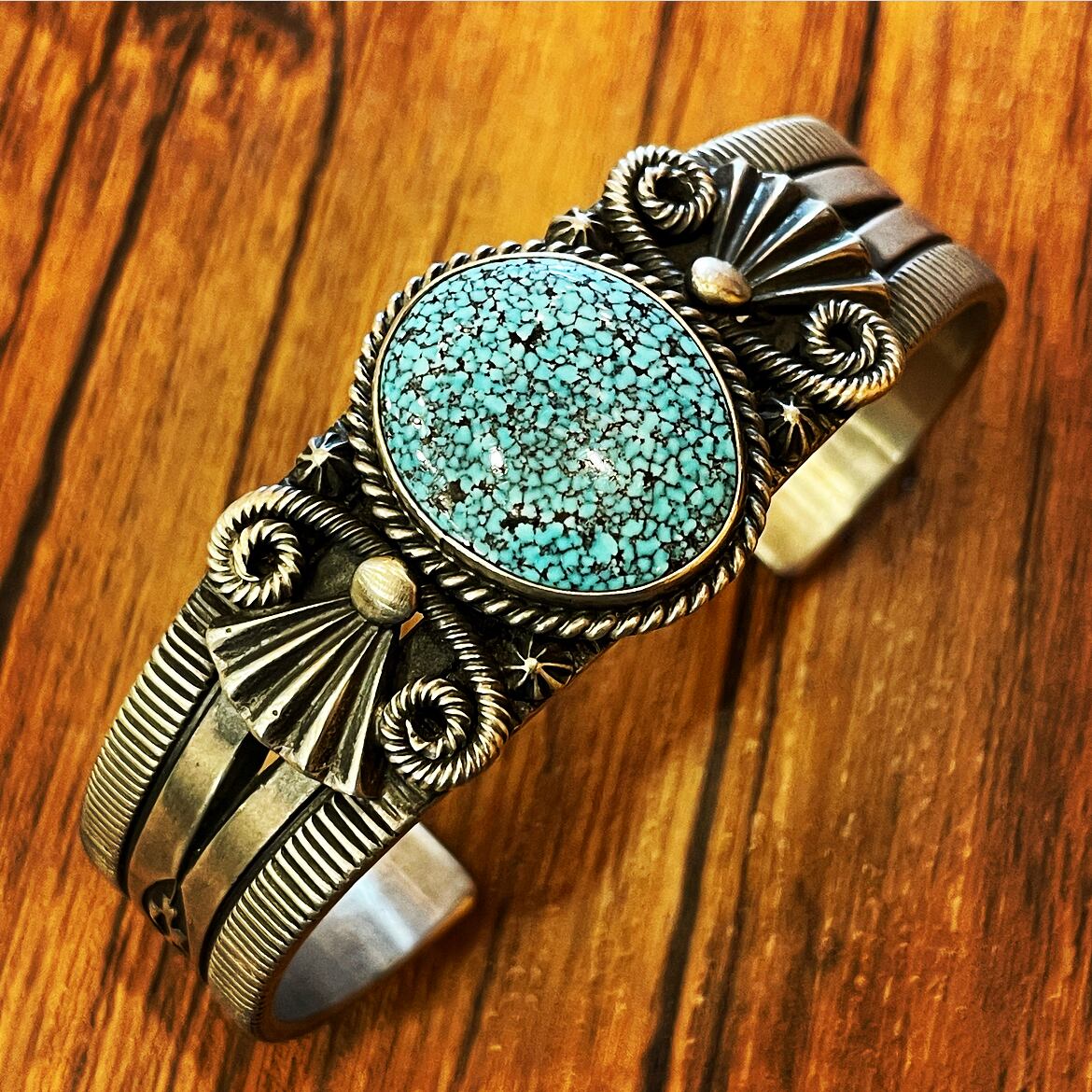 ブラックウェブが完璧なキングマンターコイズがセットされた