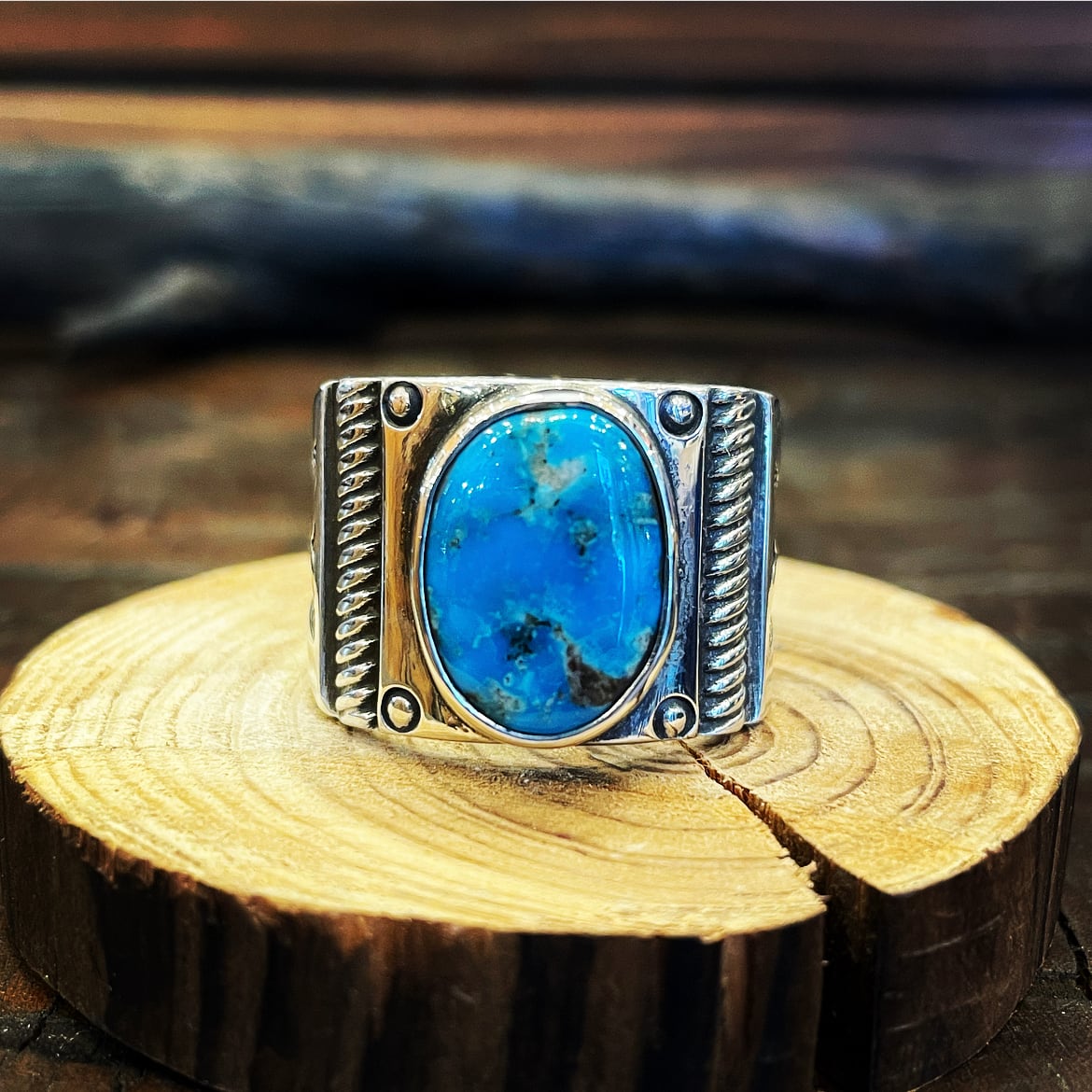 モレンシターコイズと2ミリ厚のヘビーなシルバーを使い