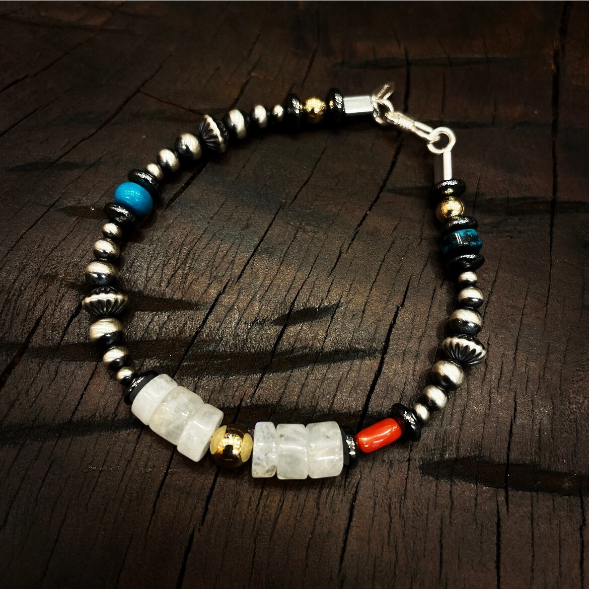 ナバホパールに、シルバービーズ、ターコイズビーズ、コーラルビーズ