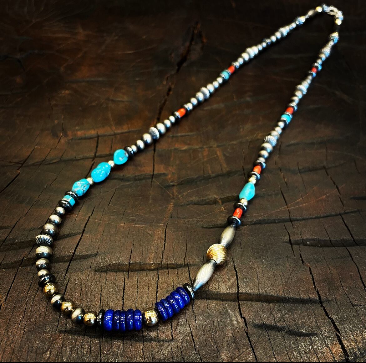 ナバホパールに、シルバービーズ、ターコイズビーズ、コーラルビーズ