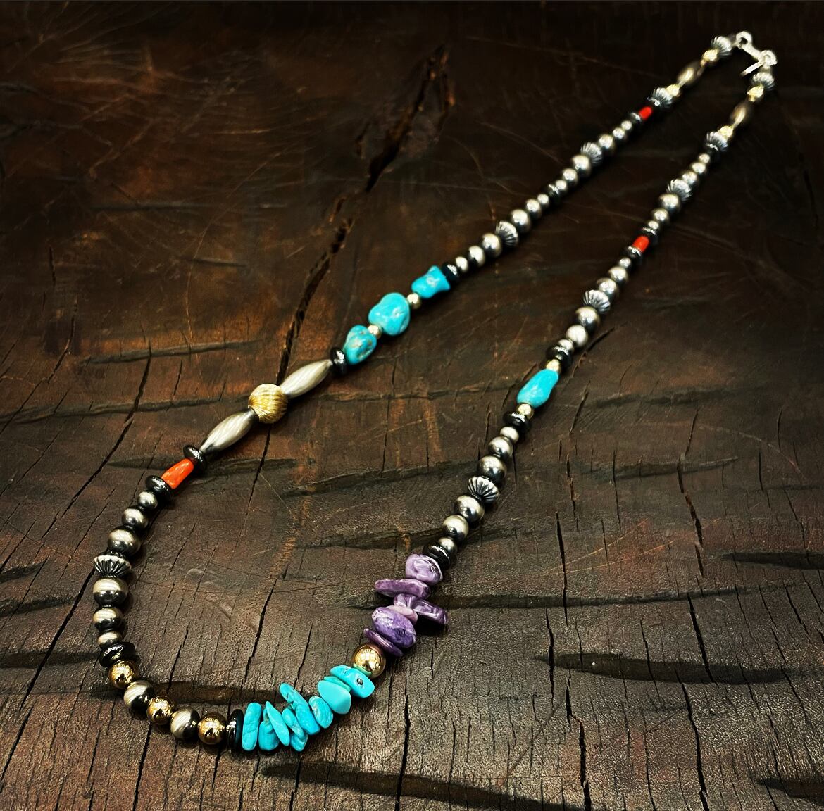 ナバホパールに、シルバービーズ、ターコイズビーズ、コーラルビーズ
