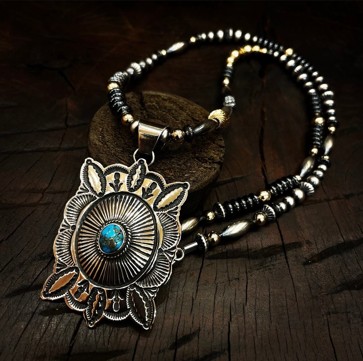 ナバホパールに、シルバービーズ、ターコイズビーズ、コーラルビーズ