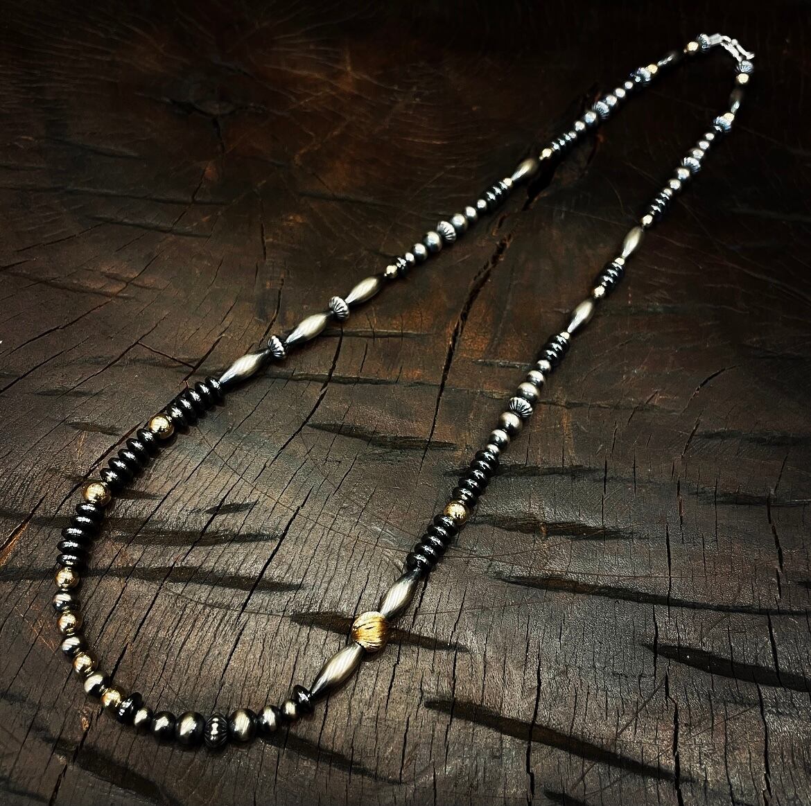 ナバホパールに、シルバービーズ、ターコイズビーズ、コーラルビーズ