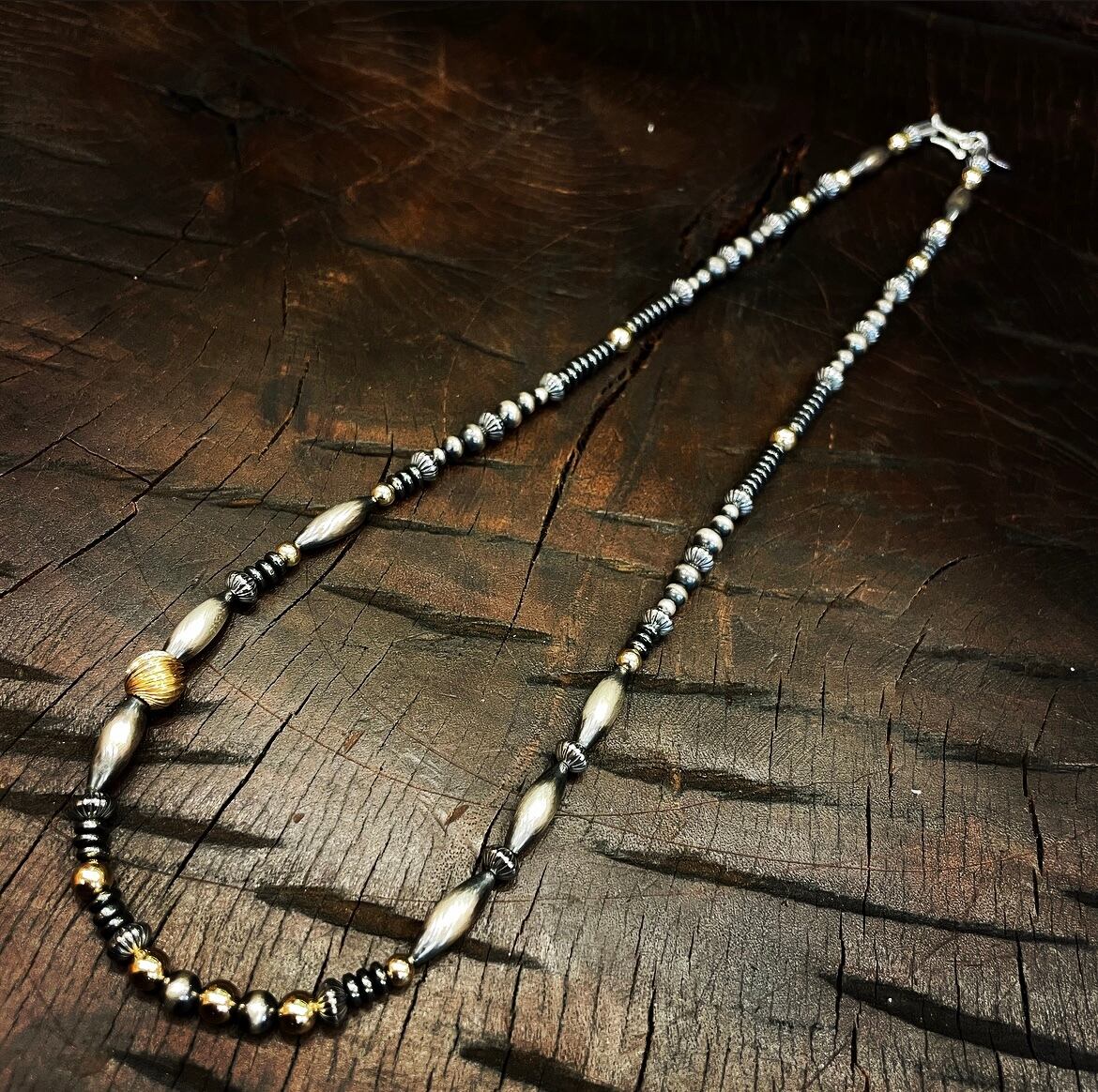 ナバホパールに、シルバービーズ、ターコイズビーズ、コーラルビーズ