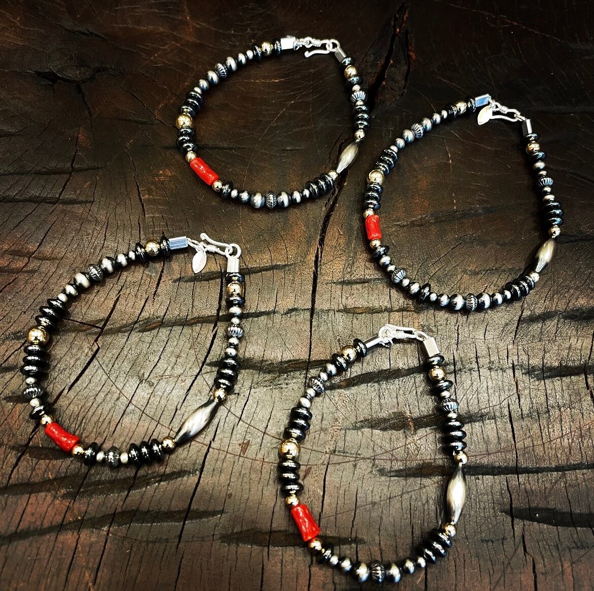 ナバホパールに、シルバービーズ、ターコイズビーズ、コーラルビーズ