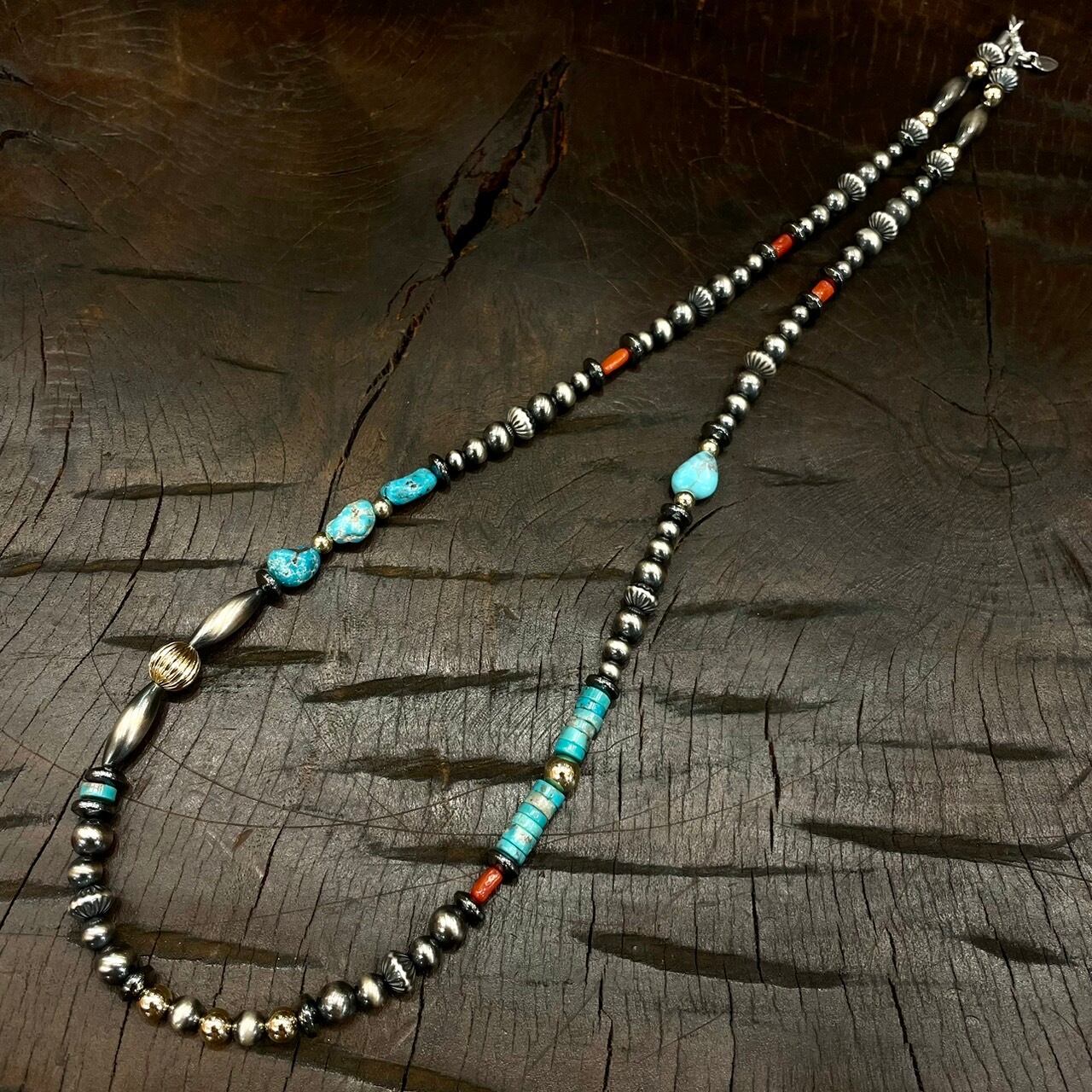ナバホパールに、シルバービーズ、ターコイズビーズ、コーラルビーズ
