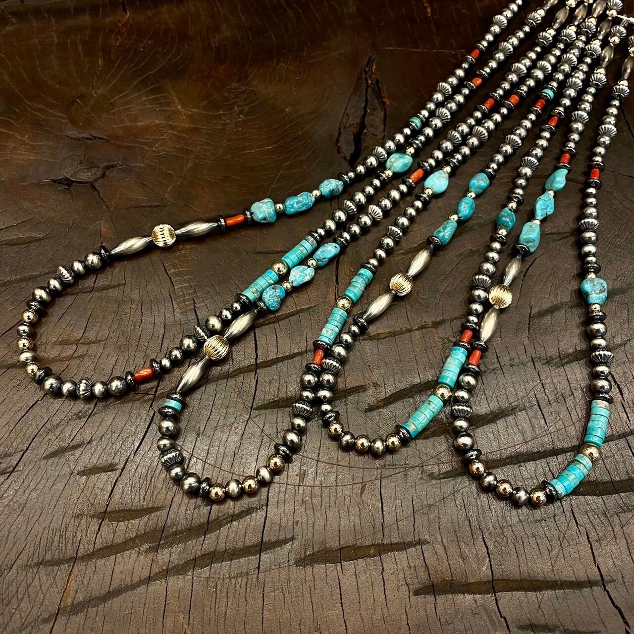 ナバホパールに、シルバービーズ、ターコイズビーズ、コーラルビーズ