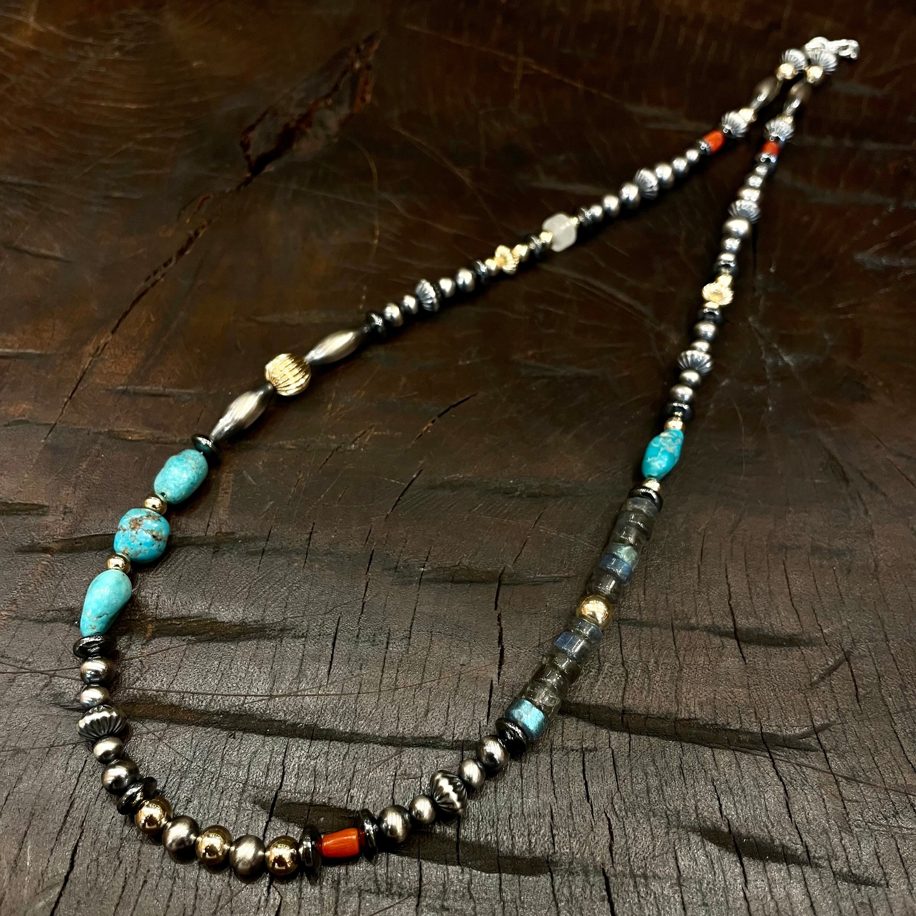 ナバホパールに、シルバービーズ、ターコイズビーズ、コーラルビーズ