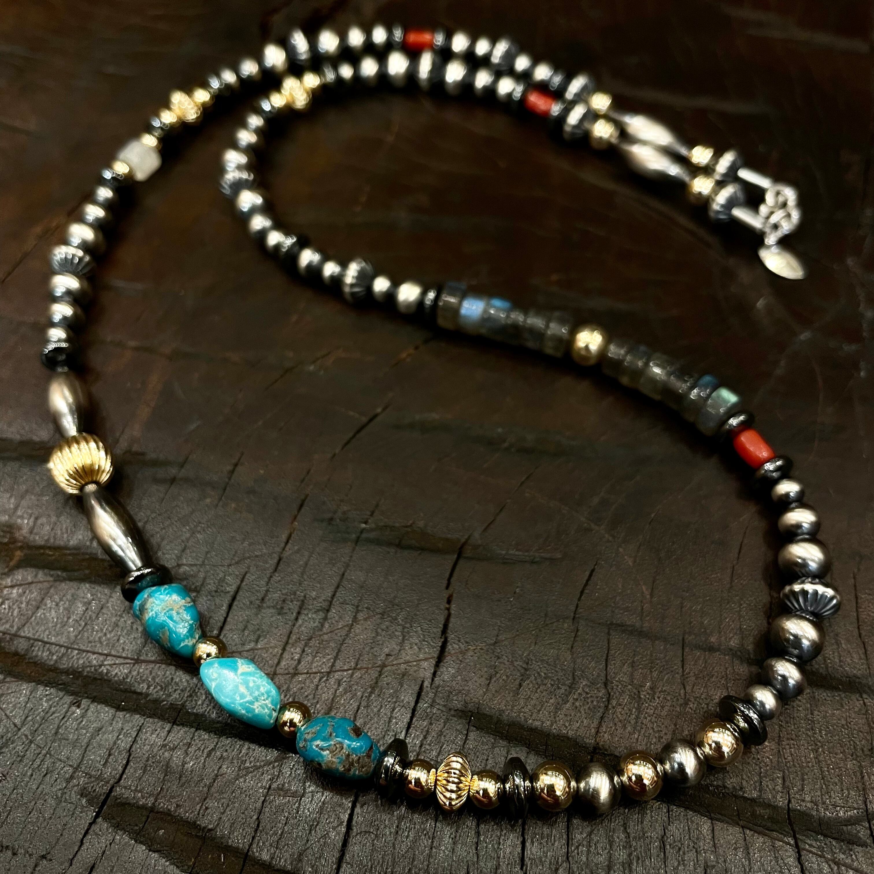 ナバホパールに、シルバービーズ、ターコイズビーズ、コーラルビーズ