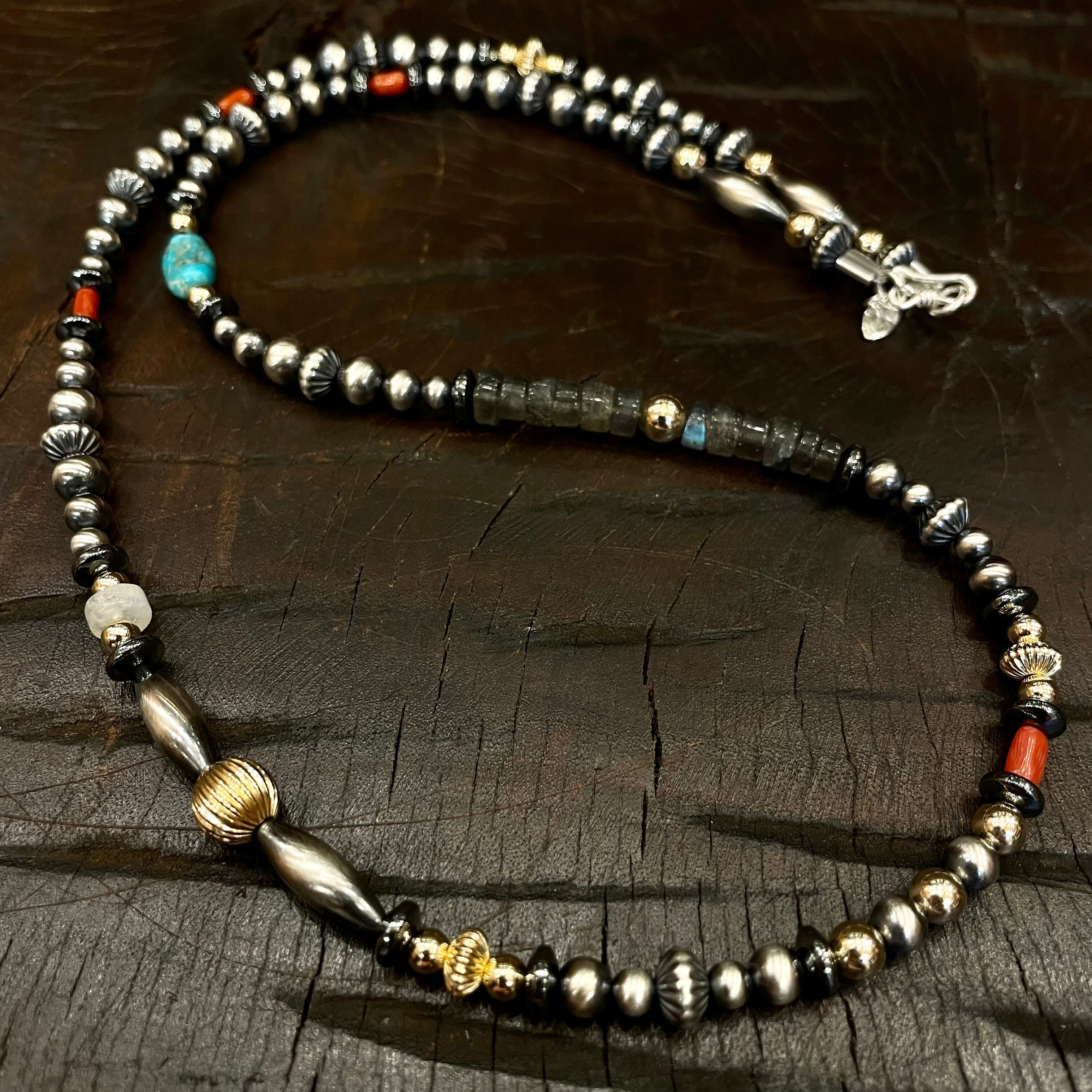 ナバホパールに、シルバービーズ、ターコイズビーズ、コーラルビーズ