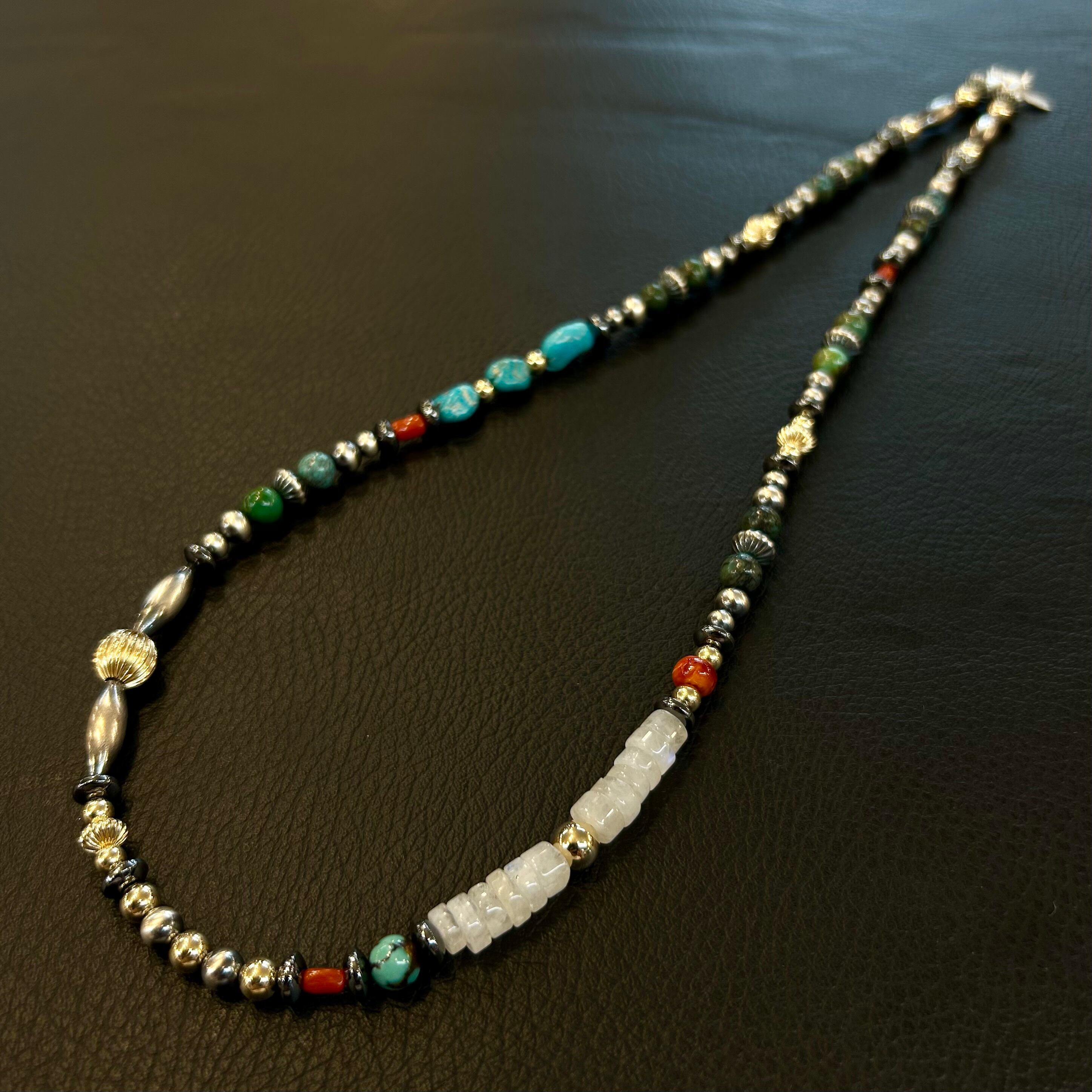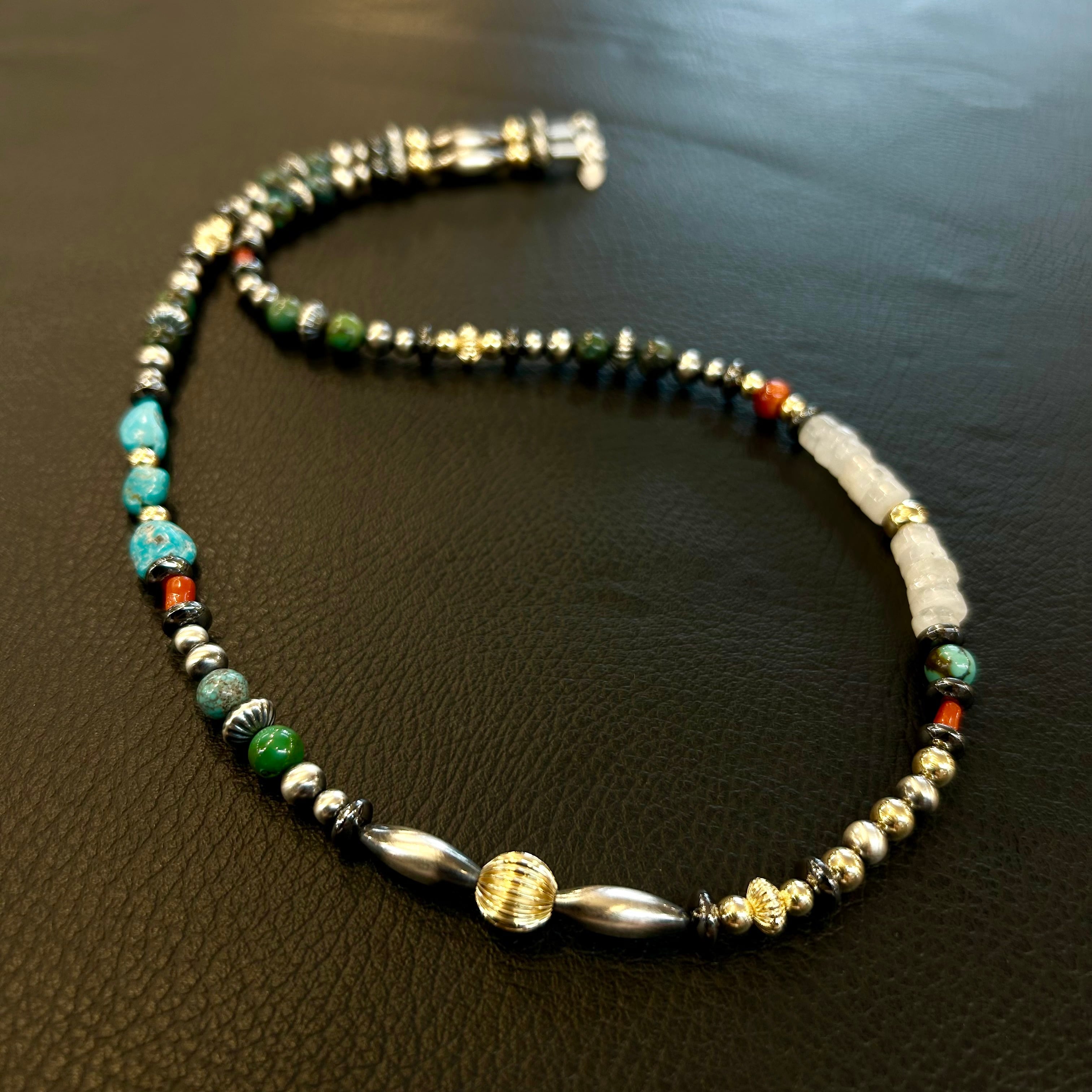 ナバホパールに、シルバービーズ、ターコイズビーズ、コーラルビーズ