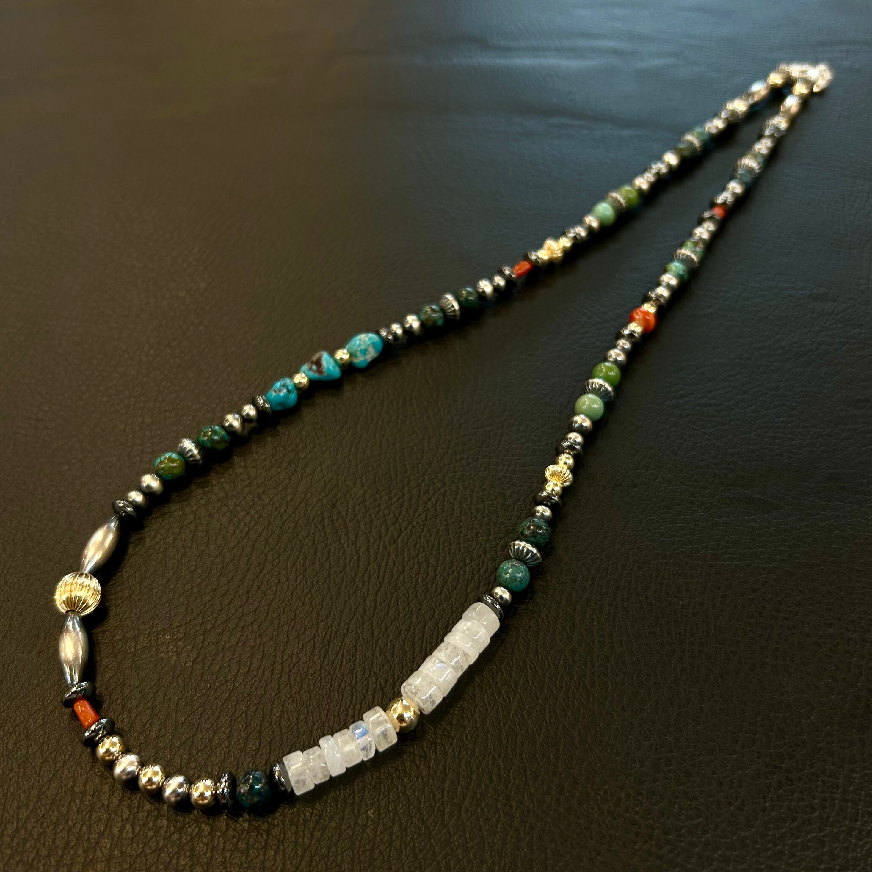 ナバホパールに、シルバービーズ、ターコイズビーズ、コーラルビーズ