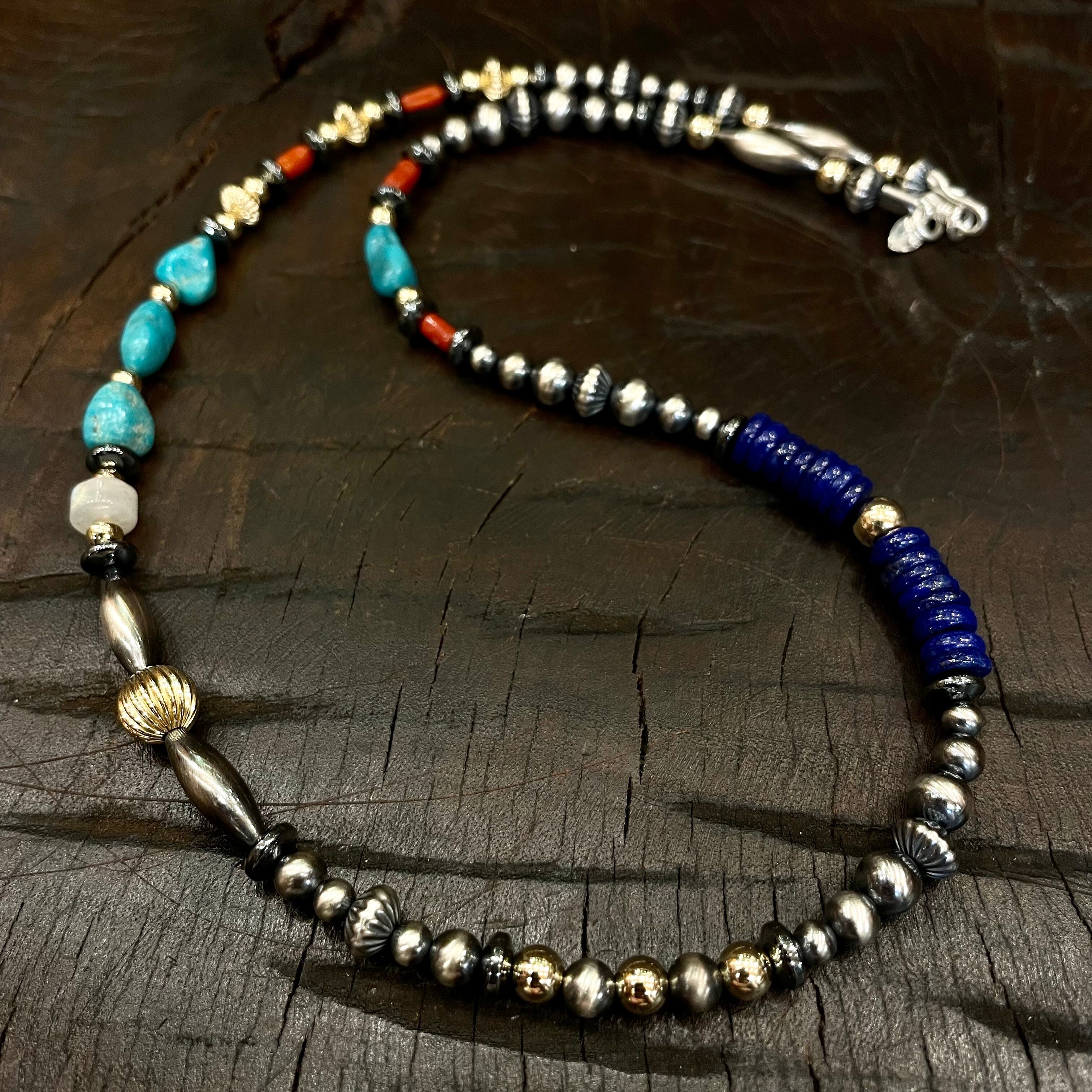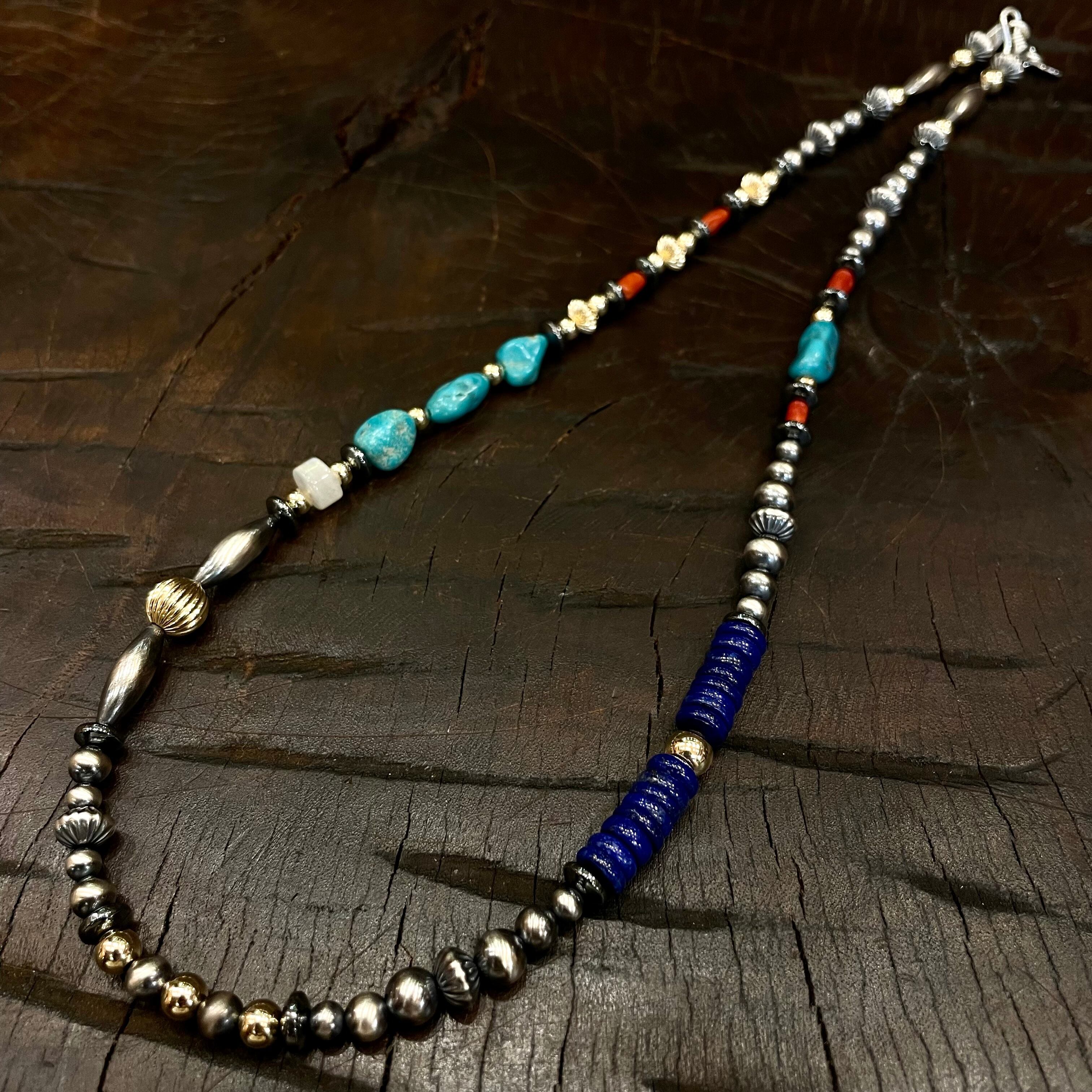 ナバホパールに、シルバービーズ、ターコイズビーズ、コーラルビーズ