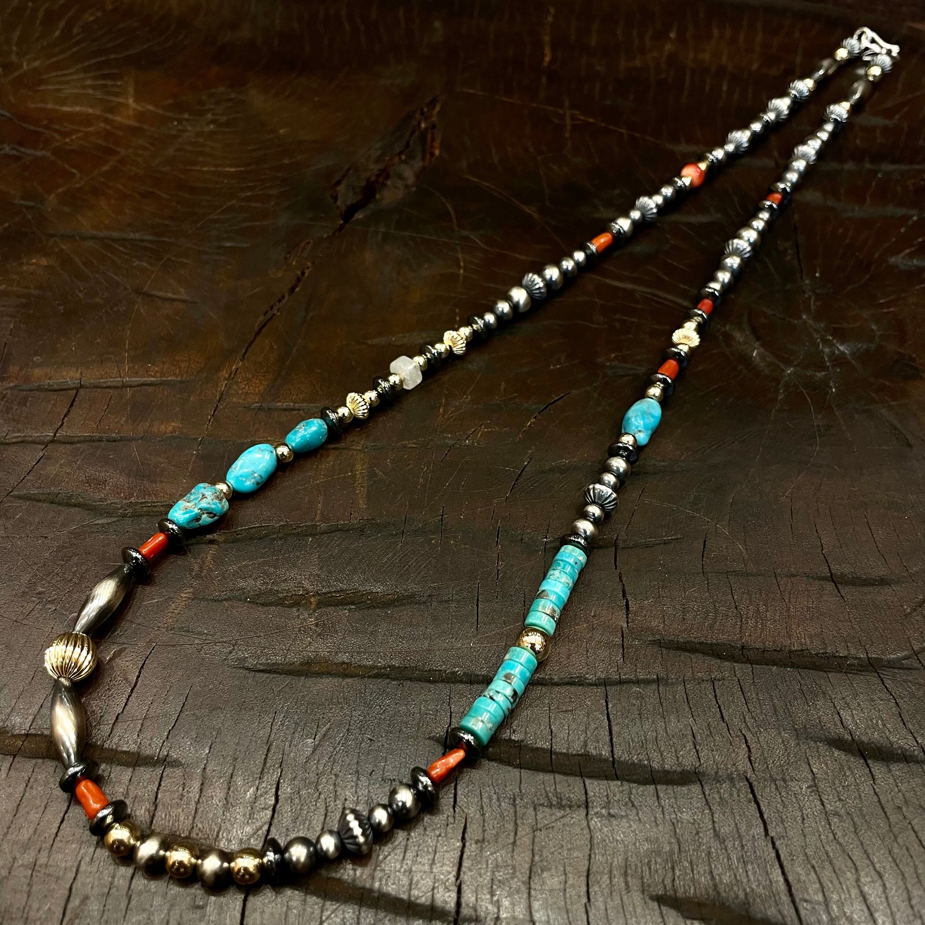 ナバホパールに、シルバービーズ、ターコイズビーズ、コーラルビーズ