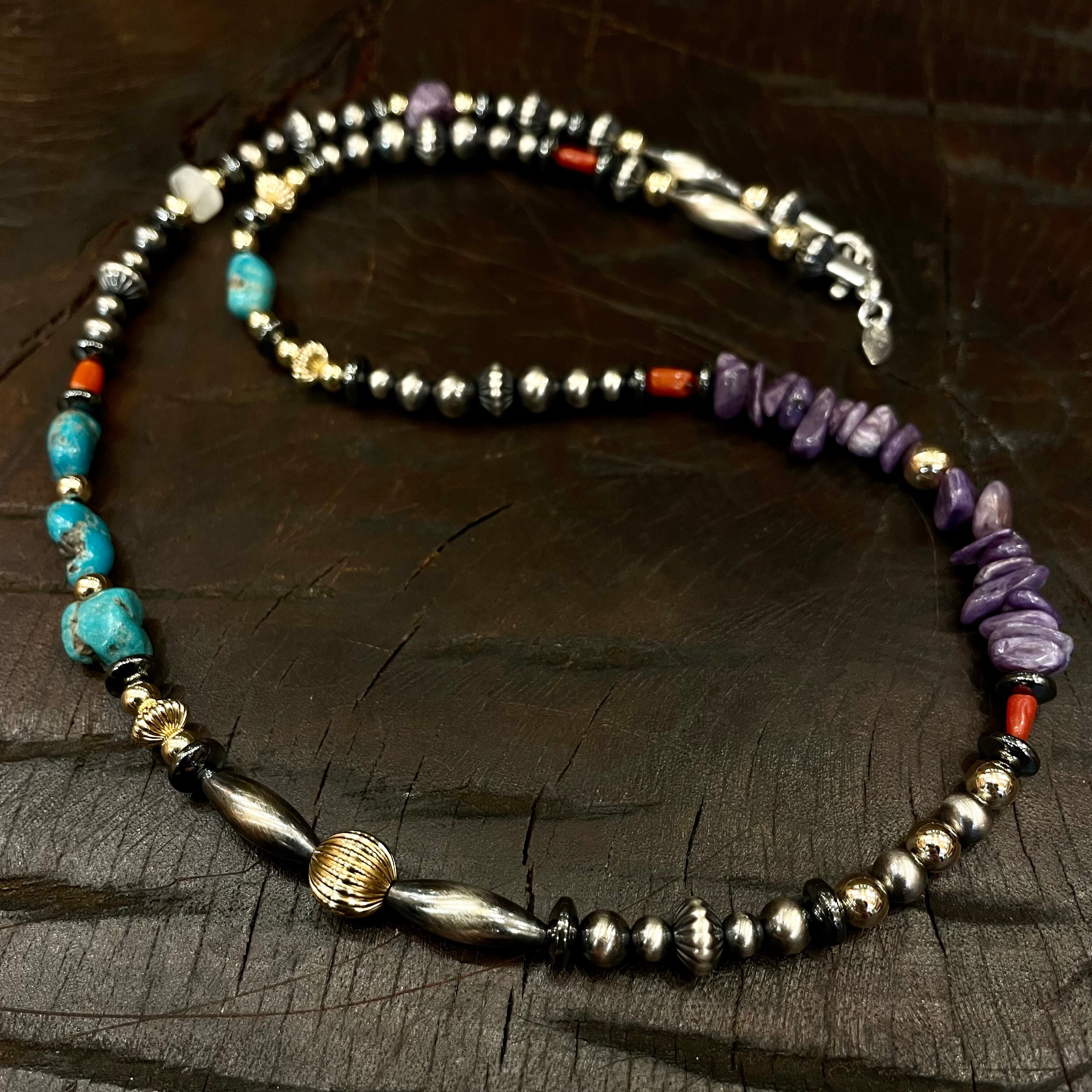 ナバホパールに、シルバービーズ、ターコイズビーズ、コーラルビーズ