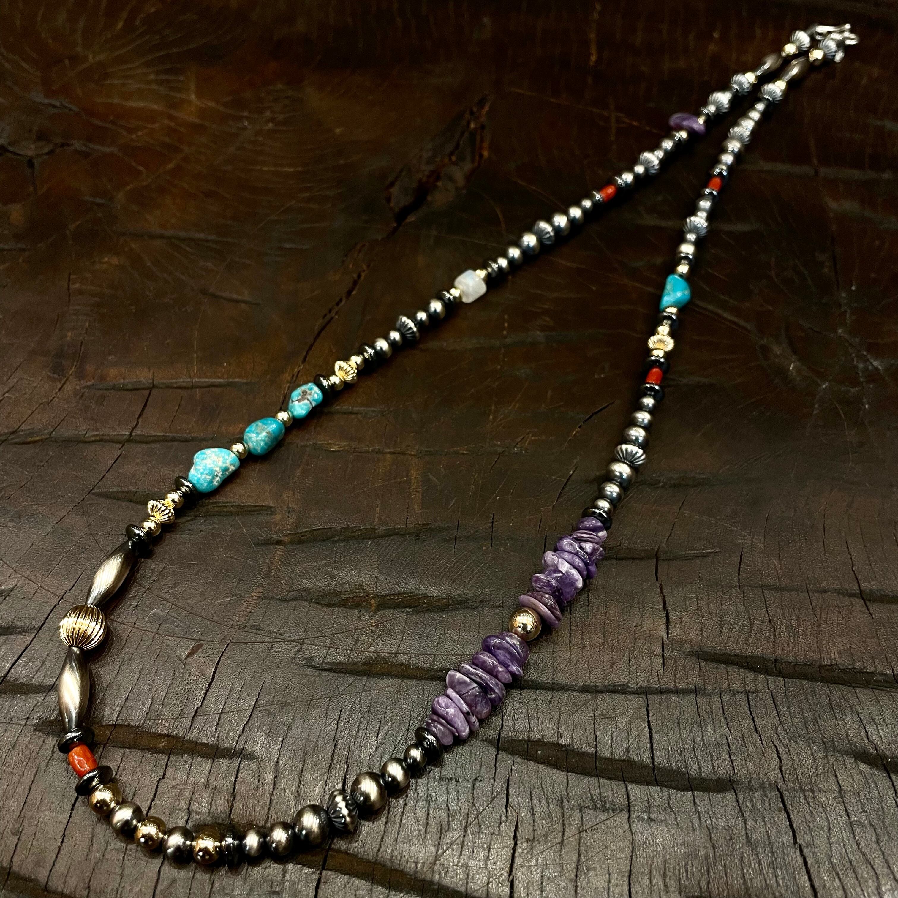 ナバホパールに、シルバービーズ、ターコイズビーズ、コーラルビーズ