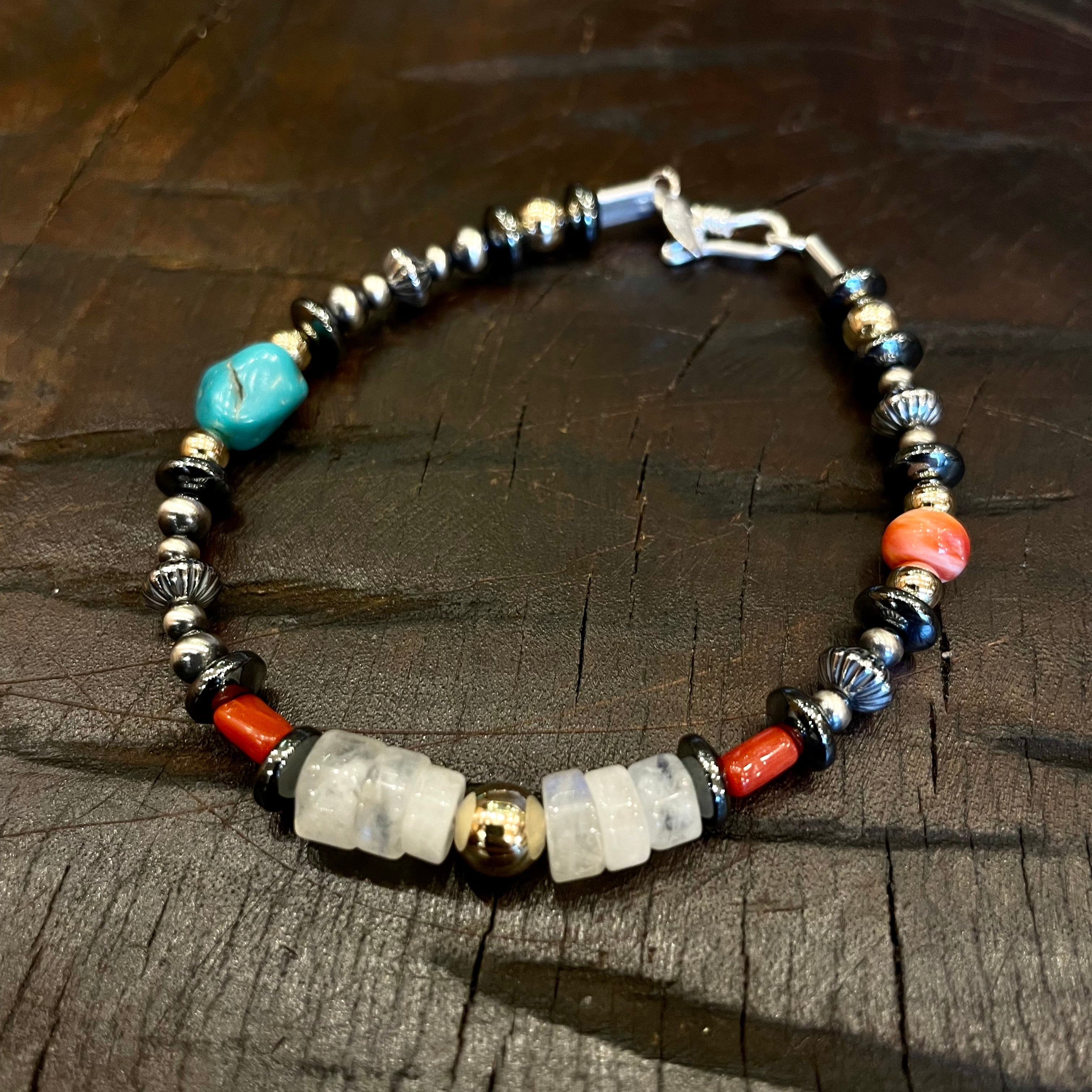 ナバホパールに、シルバービーズ、ターコイズビーズ、コーラルビーズ
