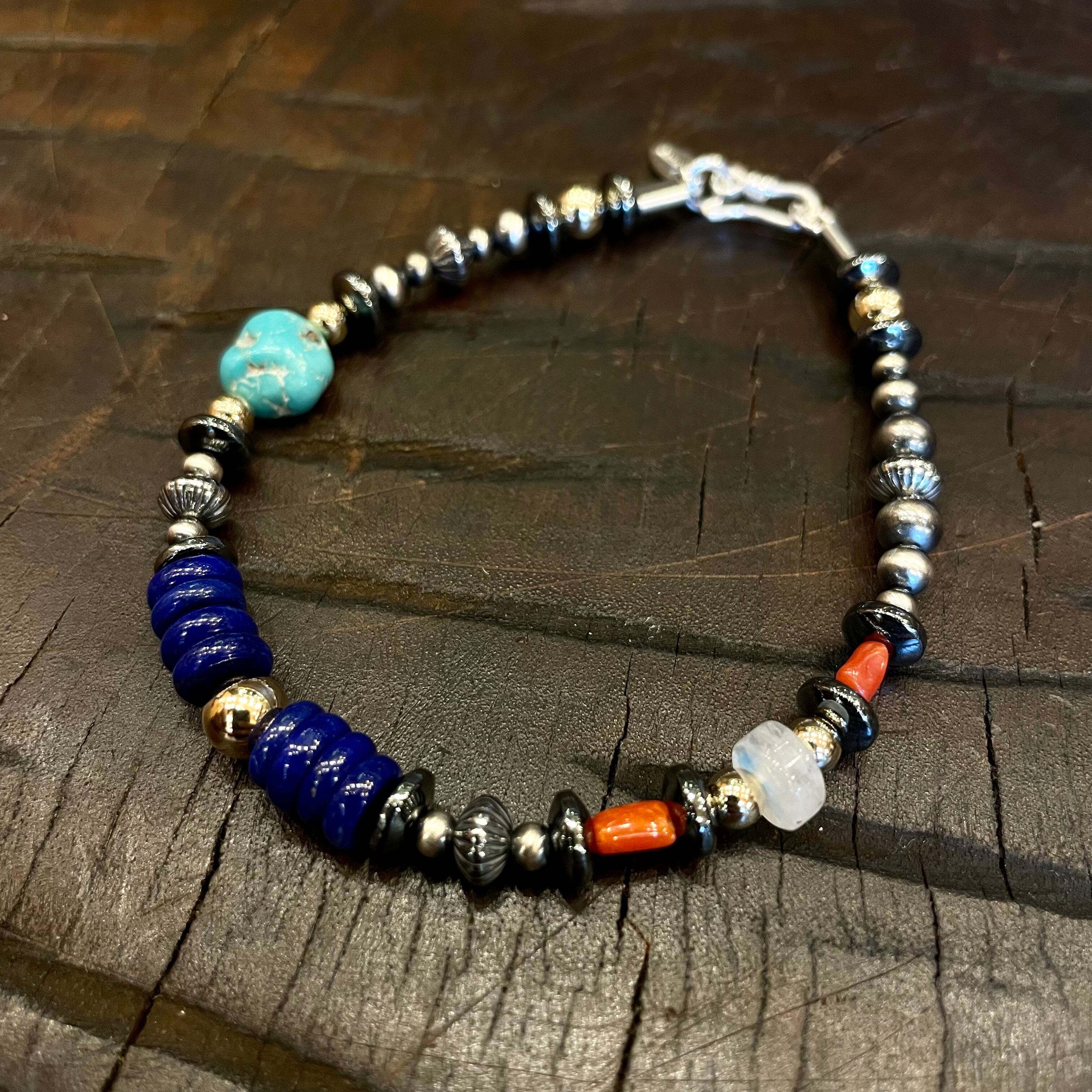 ナバホパールに、シルバービーズ、ターコイズビーズ、コーラルビーズ