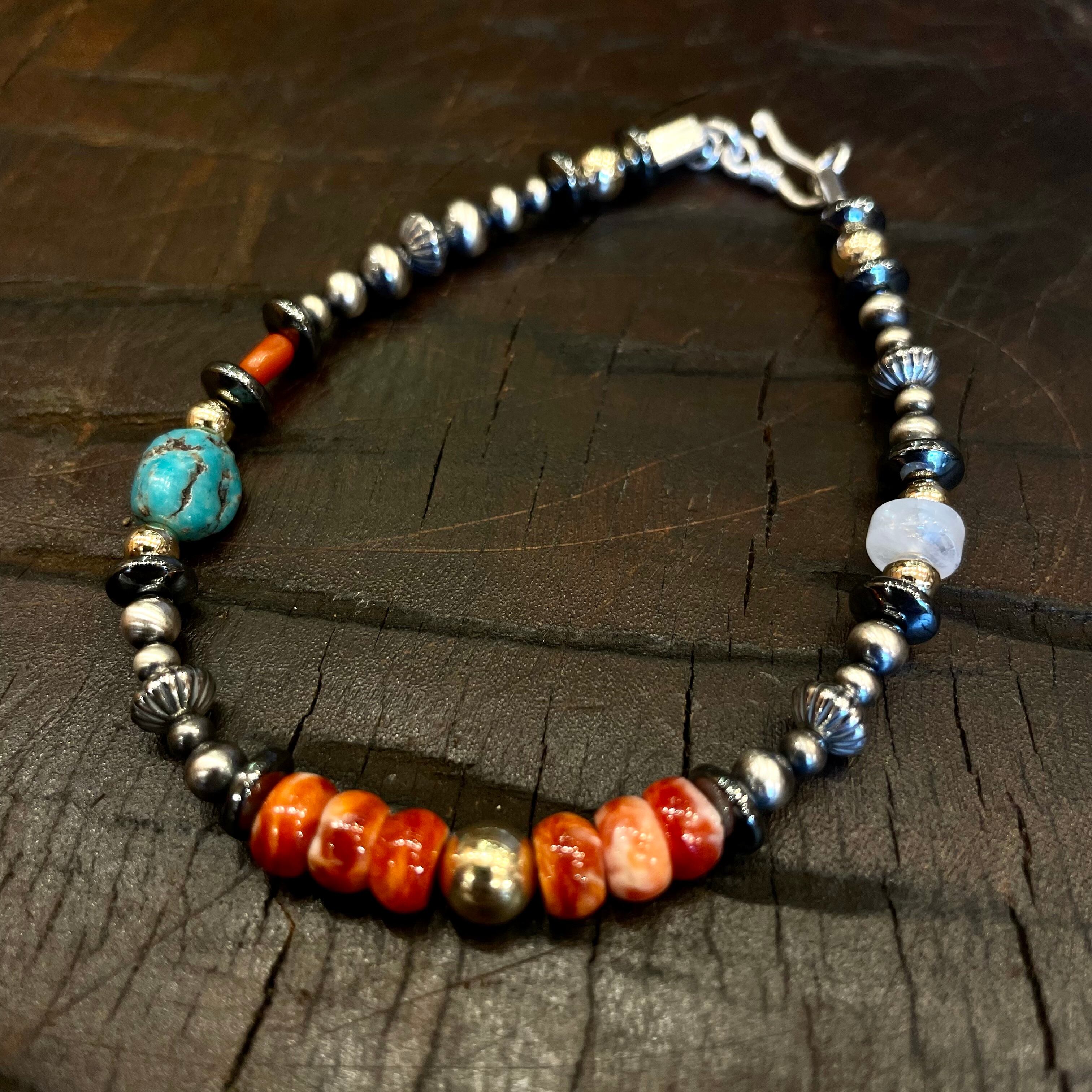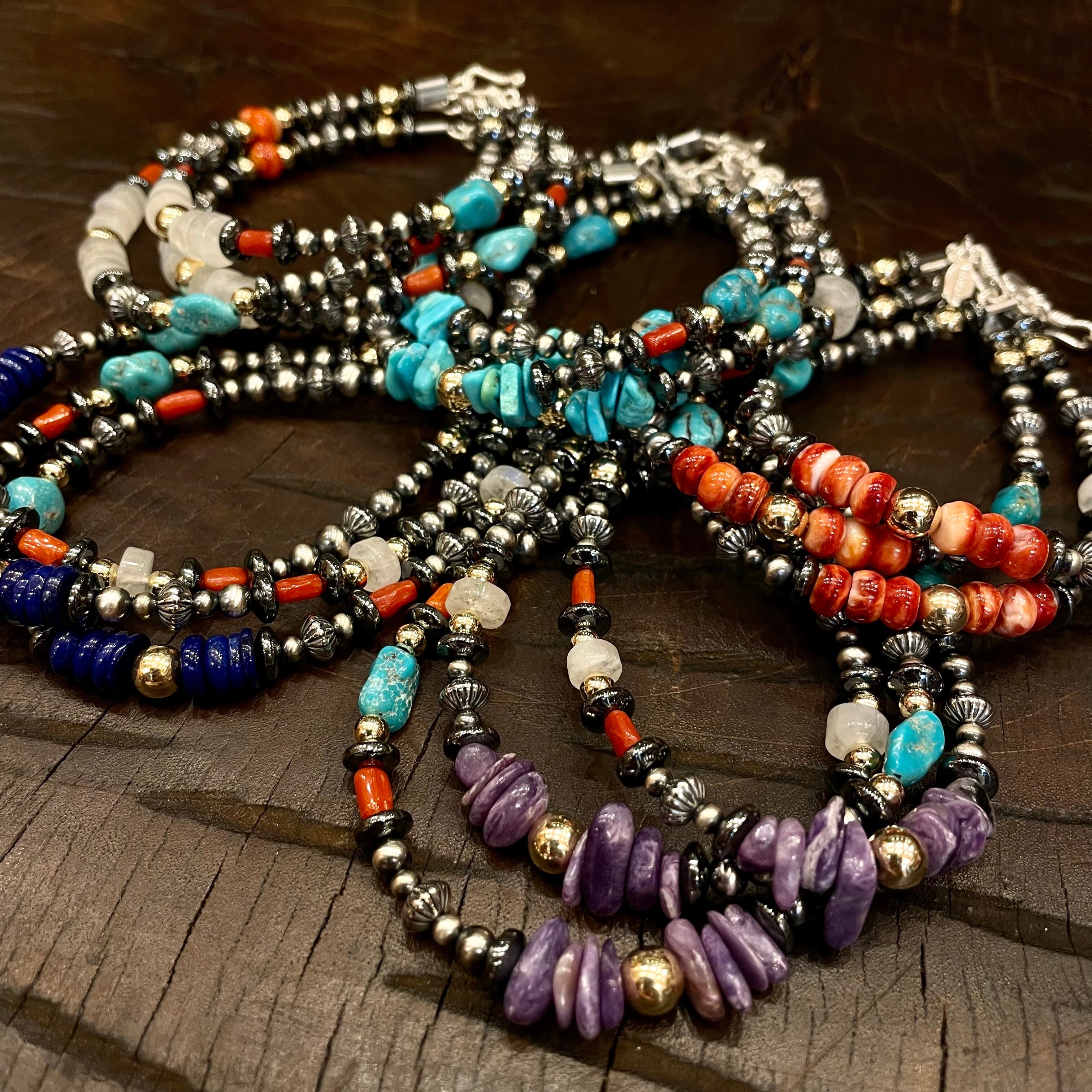 ナバホパールに、シルバービーズ、ターコイズビーズ、コーラルビーズ