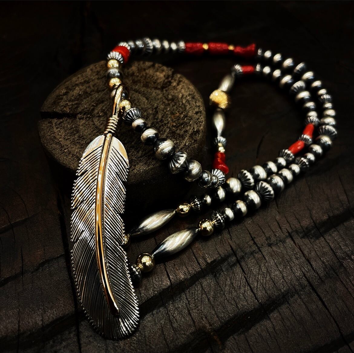 ナバホパールに、シルバービーズ、ターコイズビーズ、コーラルビーズ