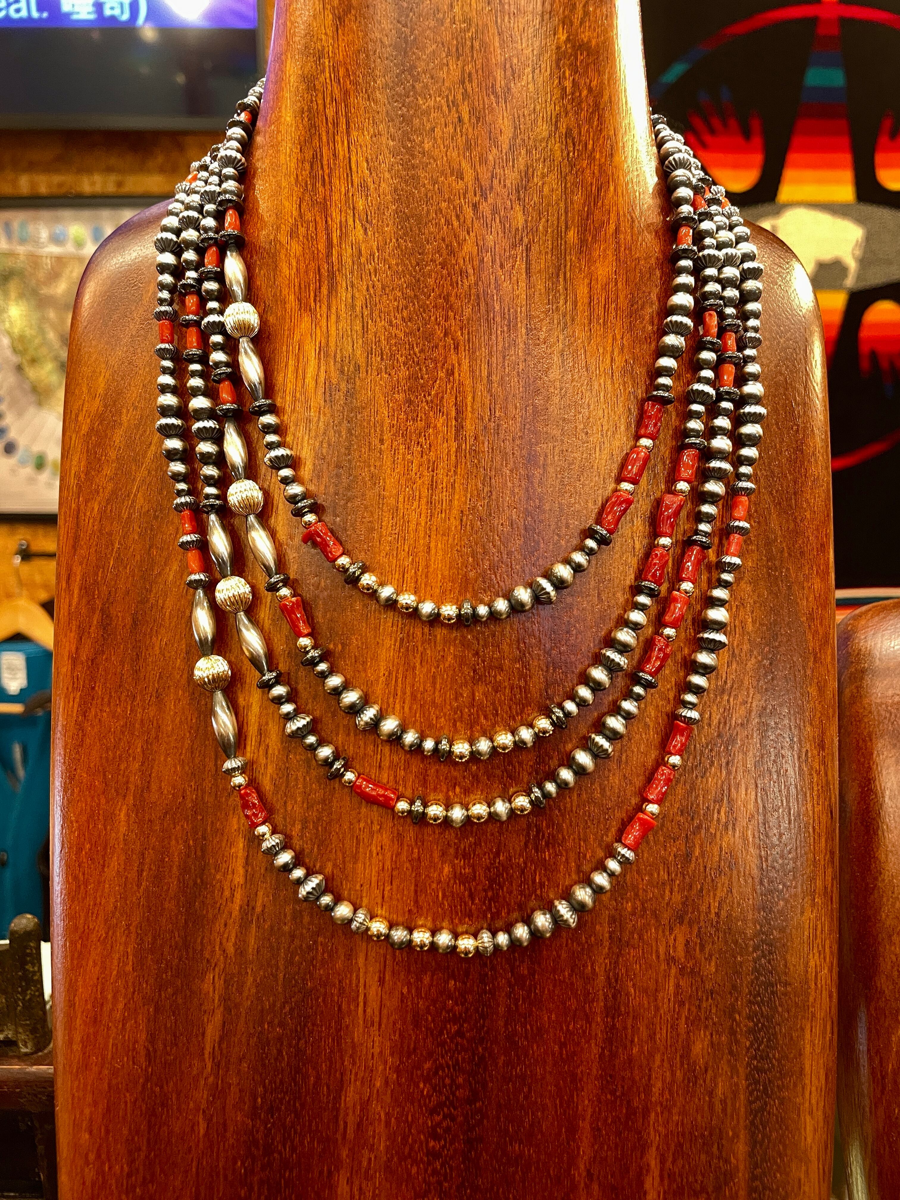 ナバホパールに、シルバービーズ、ターコイズビーズ、コーラルビーズ