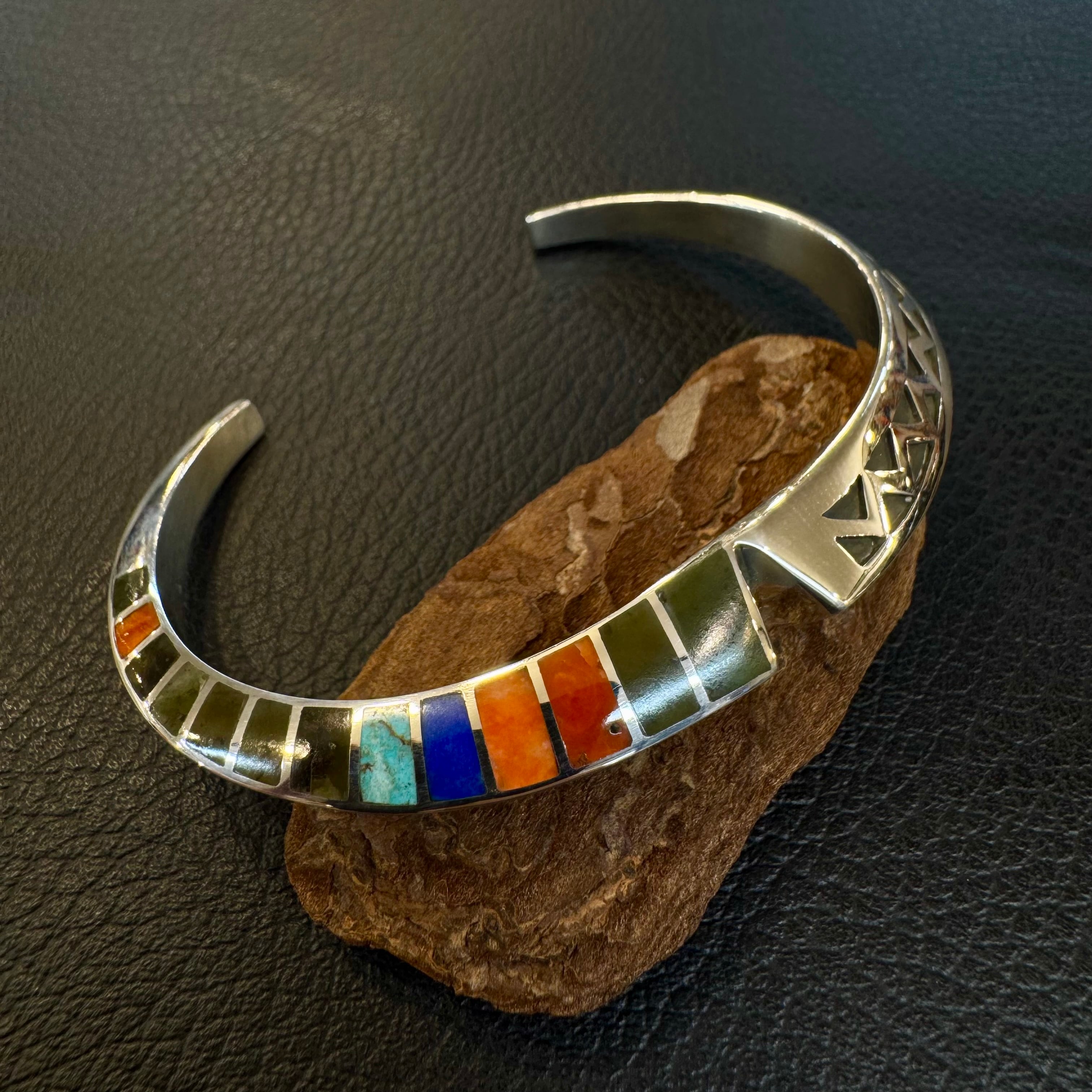 そんな彼の作品の中でも、ひときわ目を引くのがこちらのマルチストーンバングル。