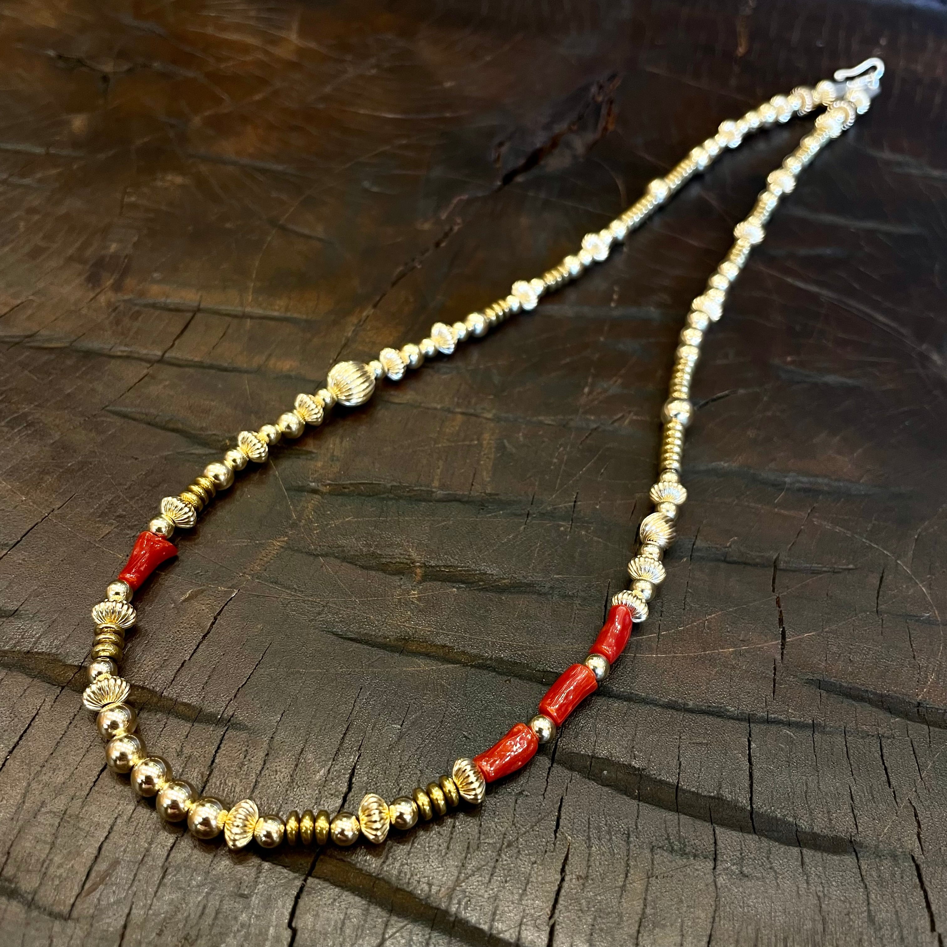 ナバホパールに、シルバービーズ、ターコイズビーズ、コーラルビーズ