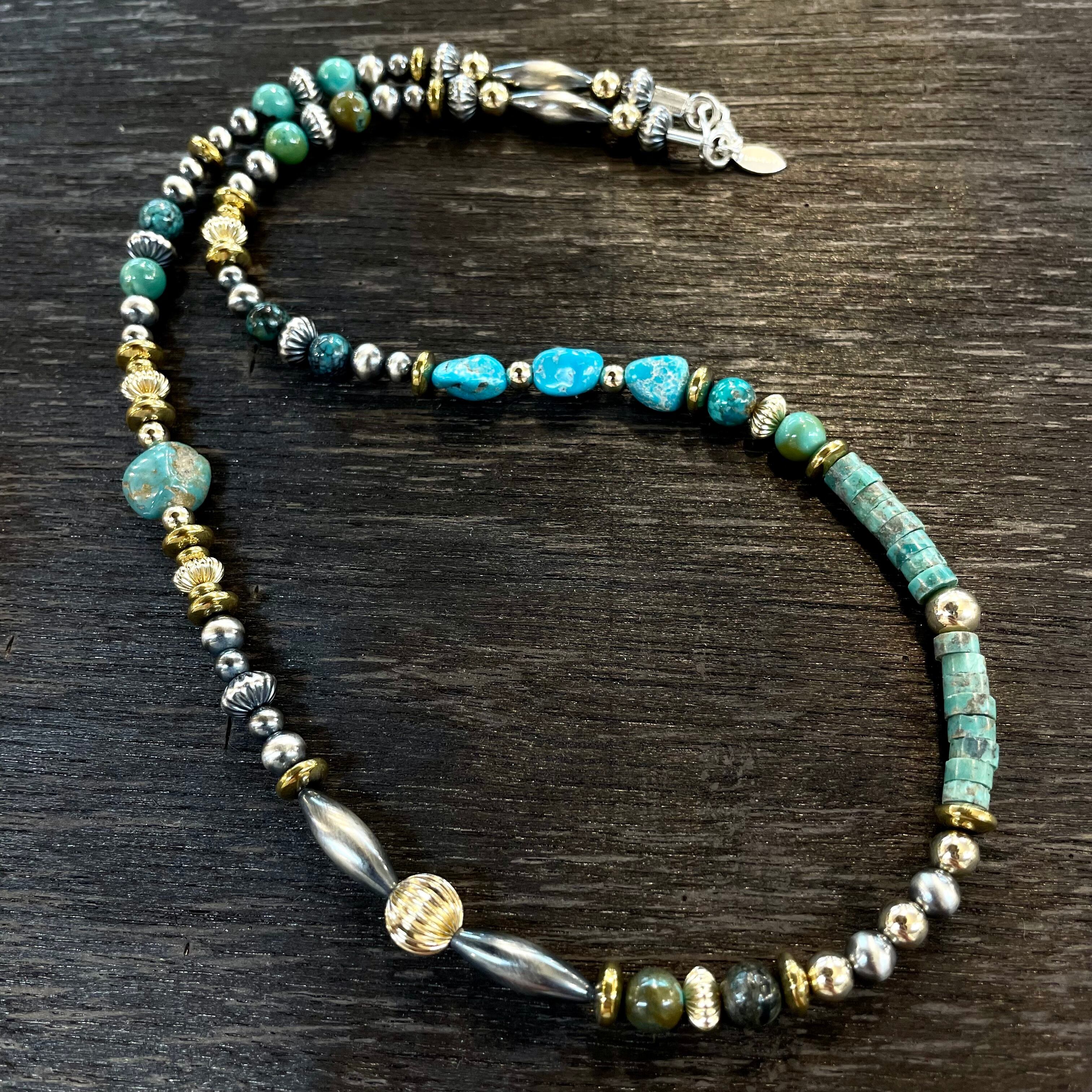 ナバホパールに、シルバービーズ、ターコイズビーズ、コーラルビーズ