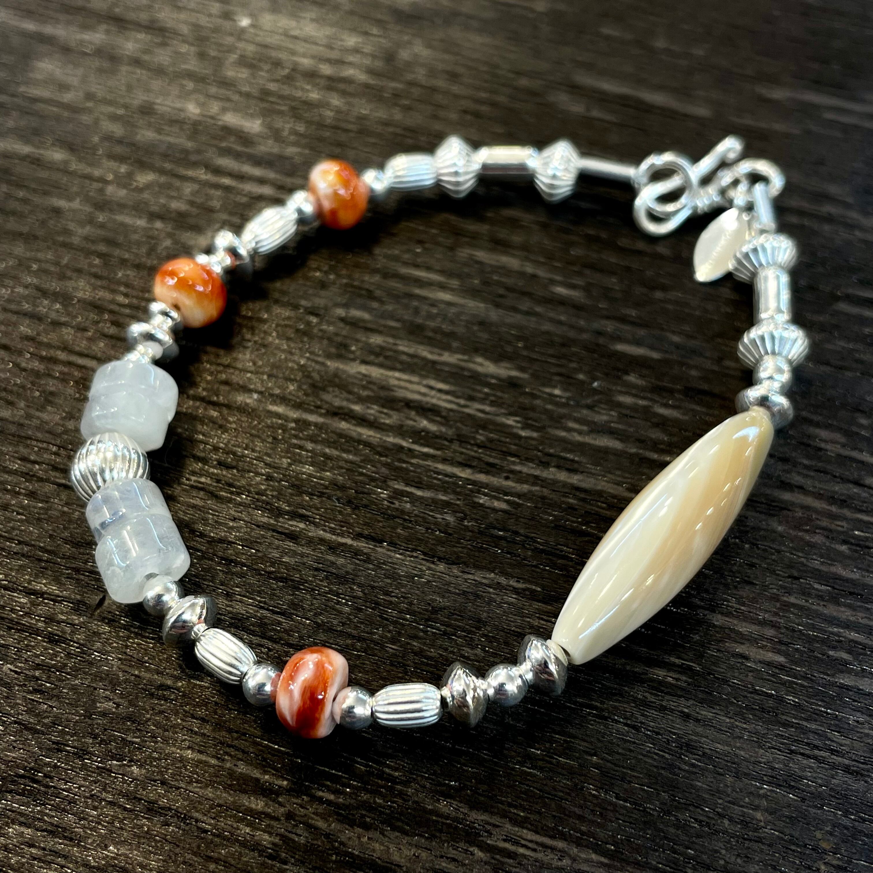 ナバホパールに、シルバービーズ、ターコイズビーズ、コーラルビーズ